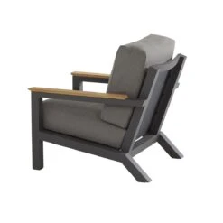 De stoere Capitol lounge fauteuil is een echte eyecatcher voor in de tuin. Even heerlijk tot rust komen kan prima in de lounge fauteuil van het kwaliteitsmerk 4 Seasons Outdoor. De Capitol stoel bevat namelijk dikke all-weather kussens die optimaal comfort bieden. De lounge fauteuil heeft een frame dat gemaakt is van roestvrij staal. Dit frame heeft een strak design en heeft de kleur antraciet. De armleuningen zijn gemaakt van teakhout. Teakhout is een natuurlijk materiaal en zal zonder behandeling na enige tijd vergrijzen. Wil je graag de originele kleur van het teakhout behouden? Dan raden we aan het materiaal twee keer per jaar de behandelen met speciale teak onderhoudsmiddelen. De kussens van de Capitol loungestoel zijn gemaakt van stof dat all-weather is. De kussens bieden extra comfort en zorgen ervoor dat je heerlijk kan ontspannen. De speciale stof outdoor Olefin zorgt voor een constant dezelfde vorm van het kussen. Daarnaast zorgt deze stof er ook nog voor dat water dwars door het kussen loopt. De comfortabele kussens zijn tegen alle weersomstandigheden bestand en zijn voorzien van een rits. Hierdoor zijn de kussens eenvoudig met de hand te wassen. De Capitol collectie bestaat naast deze fauteuil uit een 2,5-zitsbank en een koffietafel. Zo kan er eenvoudig een loungeset gecreëerd worden. Met de Capitol De loungestoel heeft een afmeting van 76 cm breed, 90 cm diep en is 90 cm hoog.