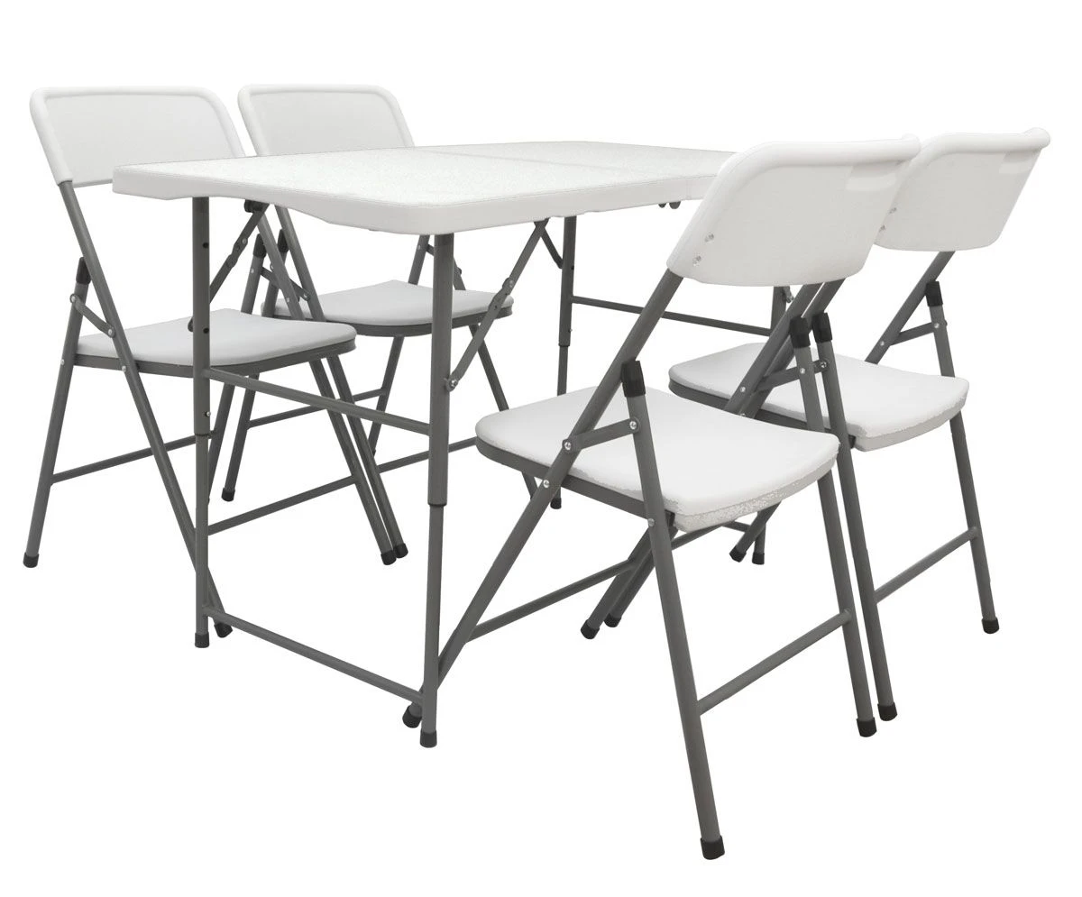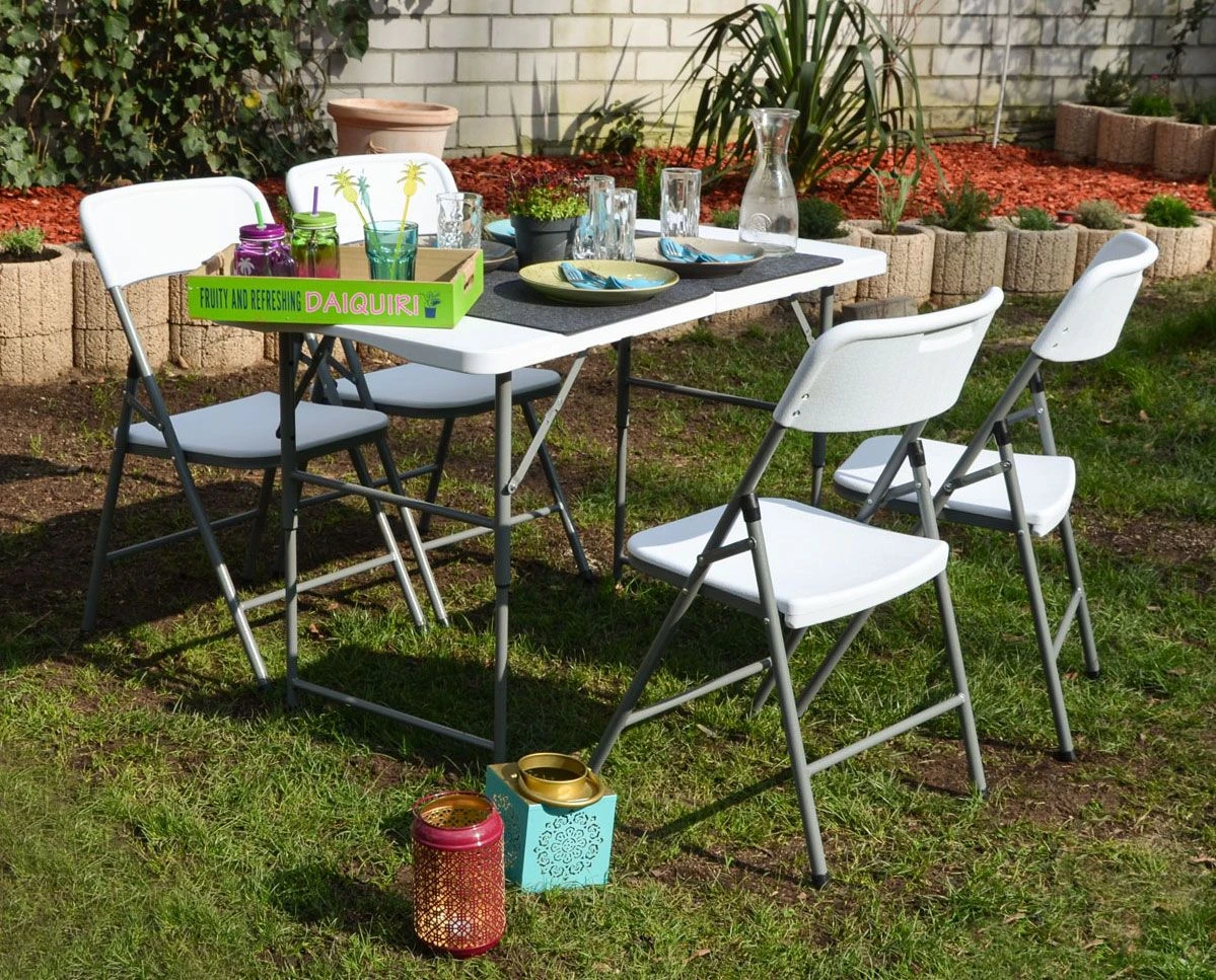 Plastic van hoge kwaliteit maakt de set weerbestendig en gemakkelijk schoon te maken. In het wit met een matte afwerking past hij in elke tuin – vuil en vlekken zijn er gemakkelijk af te vegen.