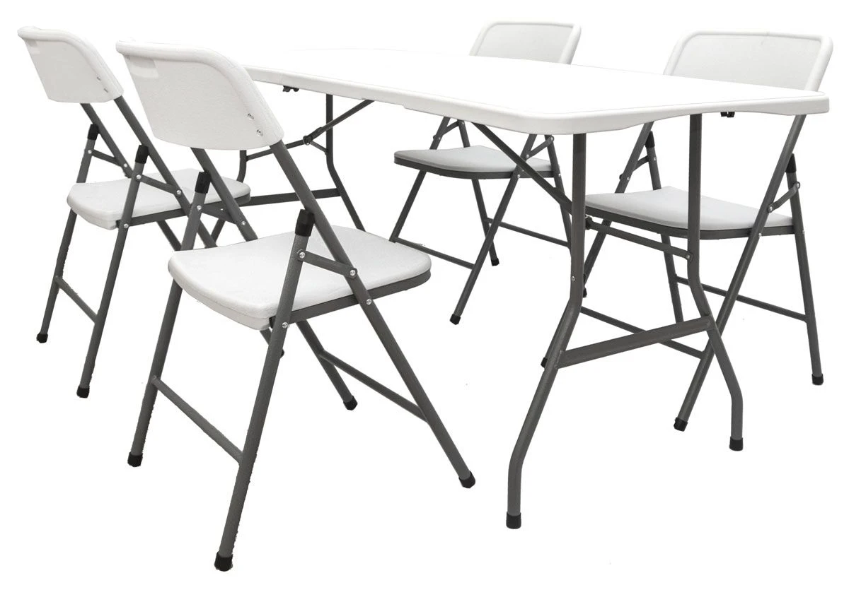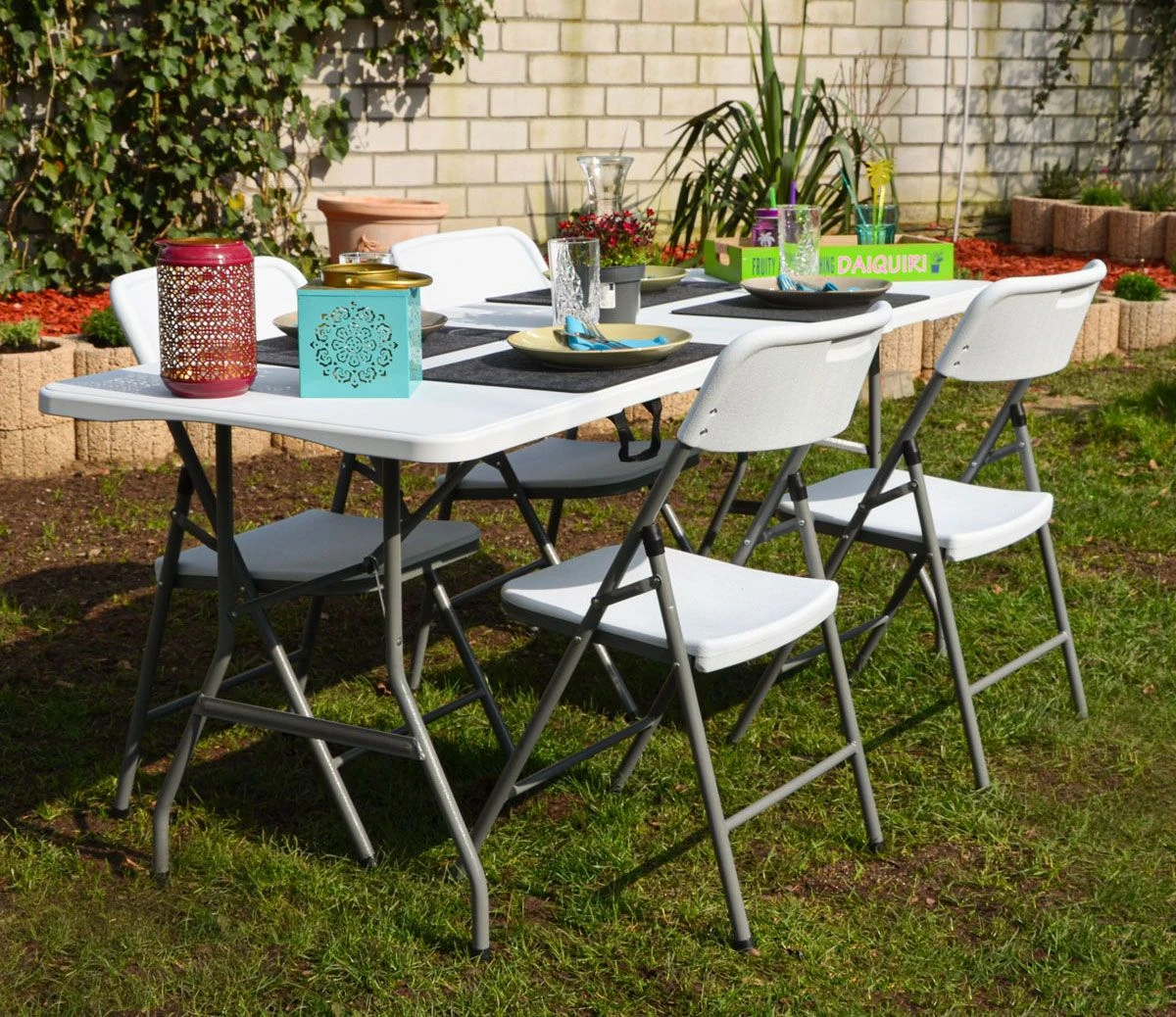 Plastic van hoge kwaliteit maakt de set weerbestendig en gemakkelijk schoon te maken. In het wit met een matte afwerking past hij in elke tuin – vuil en vlekken zijn er gemakkelijk af te vegen.