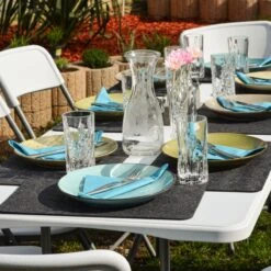 De stevige klapstoeltjes zijn bestand tegen nog zwaardere gasten. Er is voldoende ruimte voor taart en buffet – geen kantelen of wiebelen!