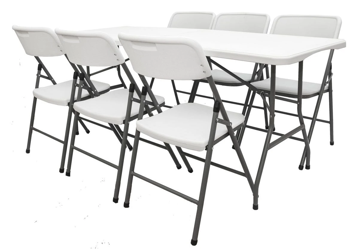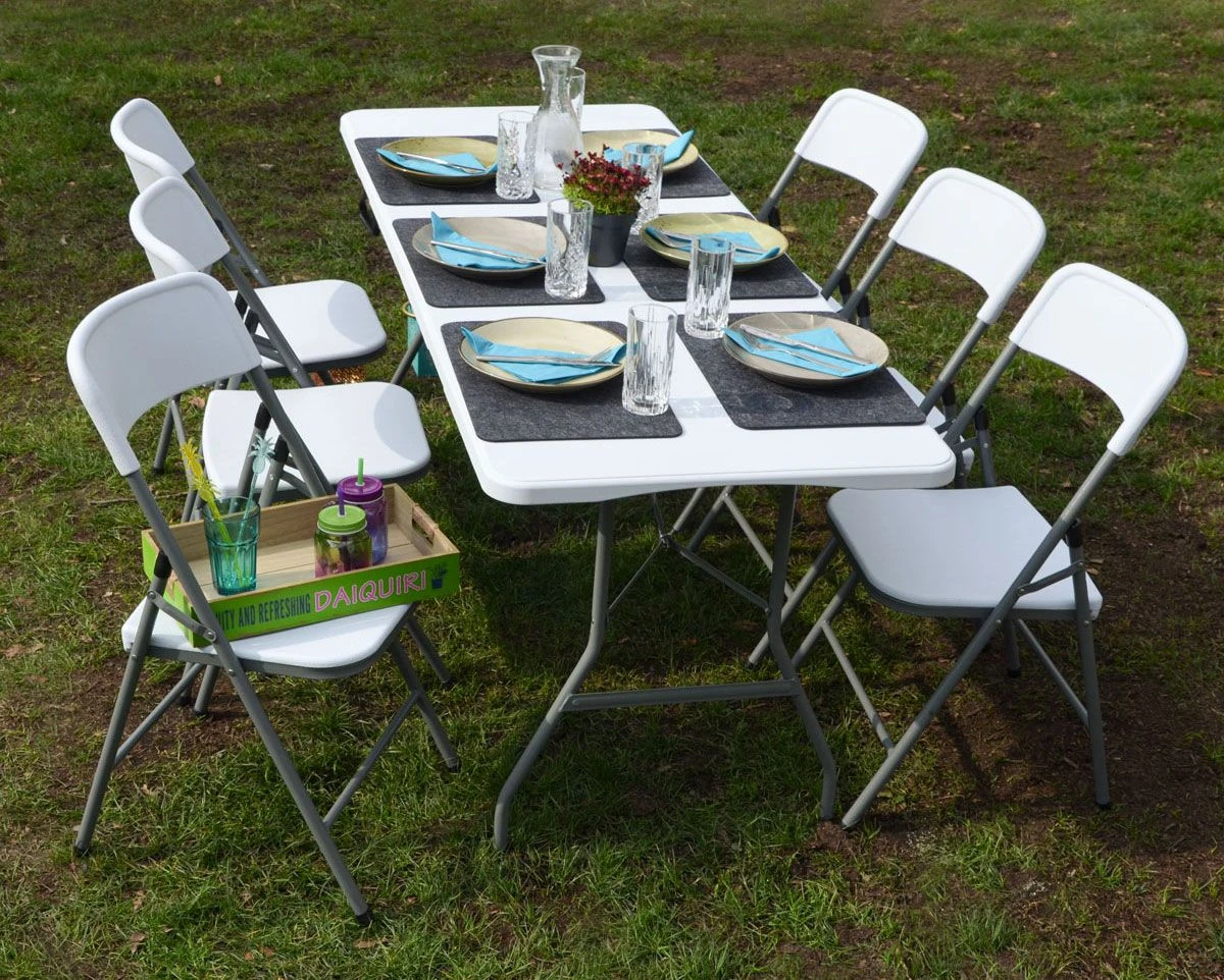 Plastic van hoge kwaliteit maakt de set weerbestendig en gemakkelijk schoon te maken. In het wit met een matte afwerking past hij in elke tuin – vuil en vlekken zijn er gemakkelijk af te vegen.