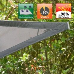 Het zeil filtert meer dan 98% van de UV-stralen en je kunt