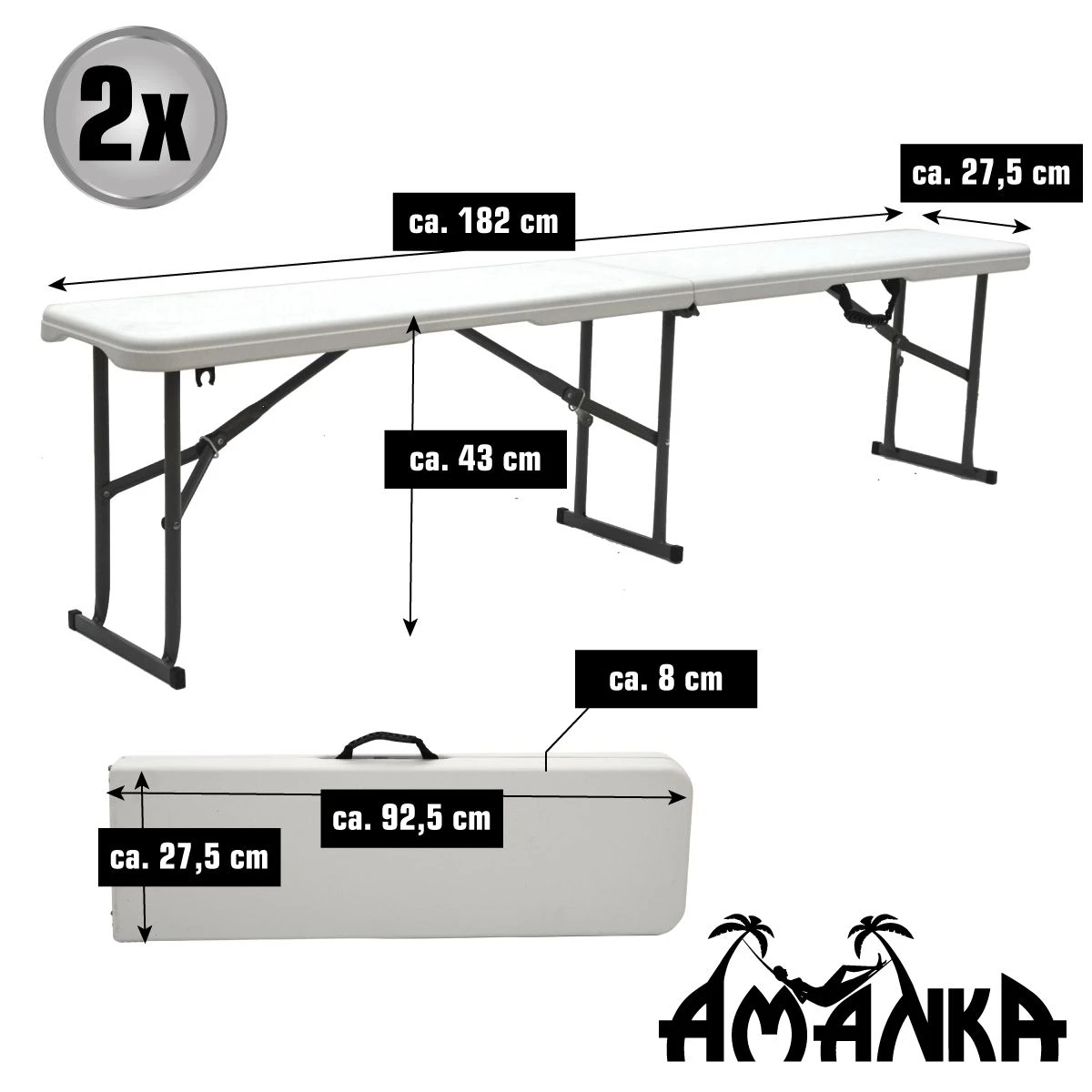 Uitvouwen, vastklikken – en klaar: de klapbank staat in een handomdraai. Met het handvat kunt u hem vervoeren als een koffer – één bankje weegt slechts 7,5 kg.