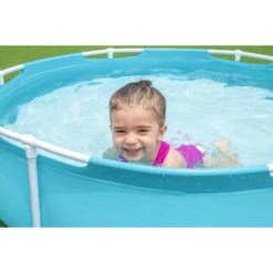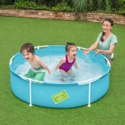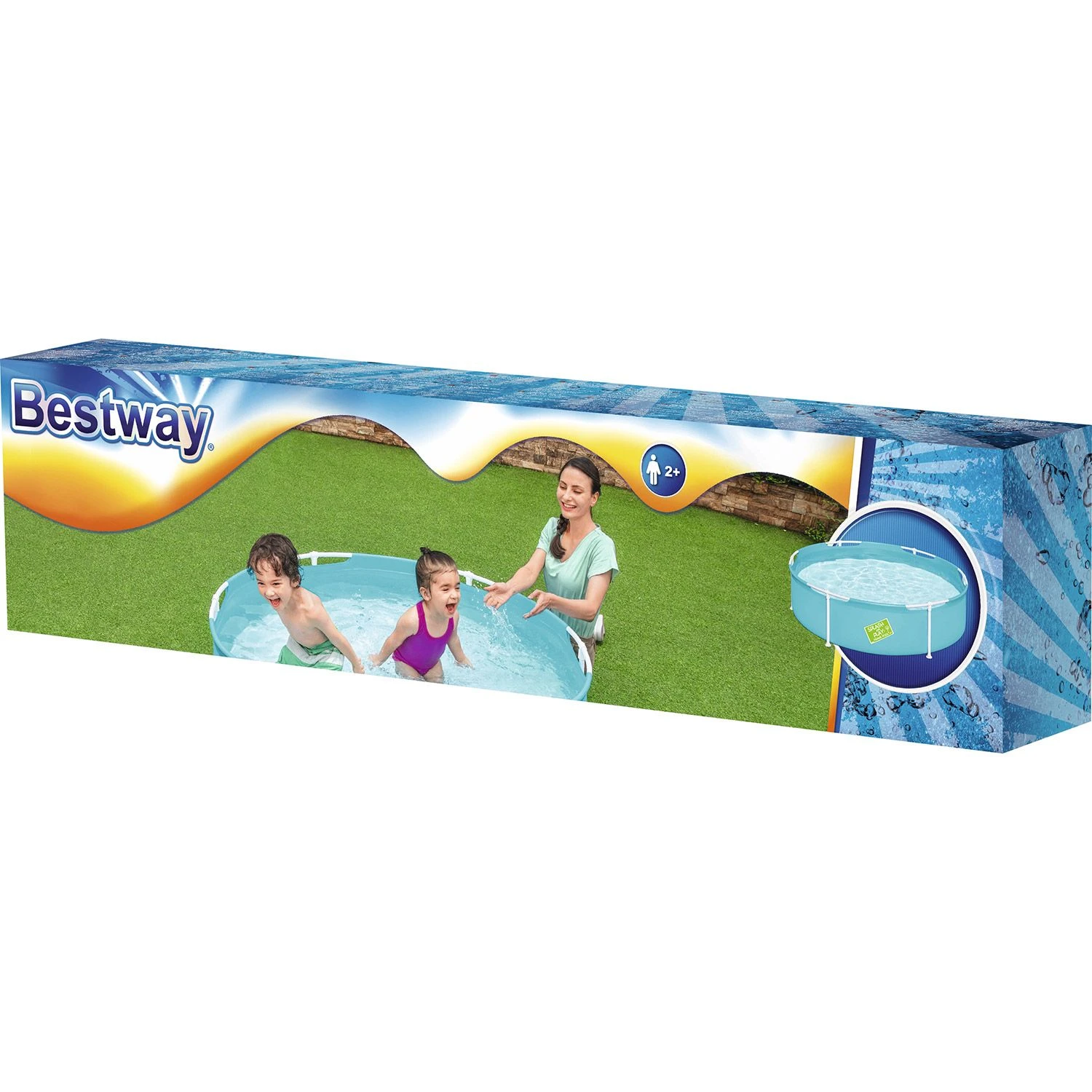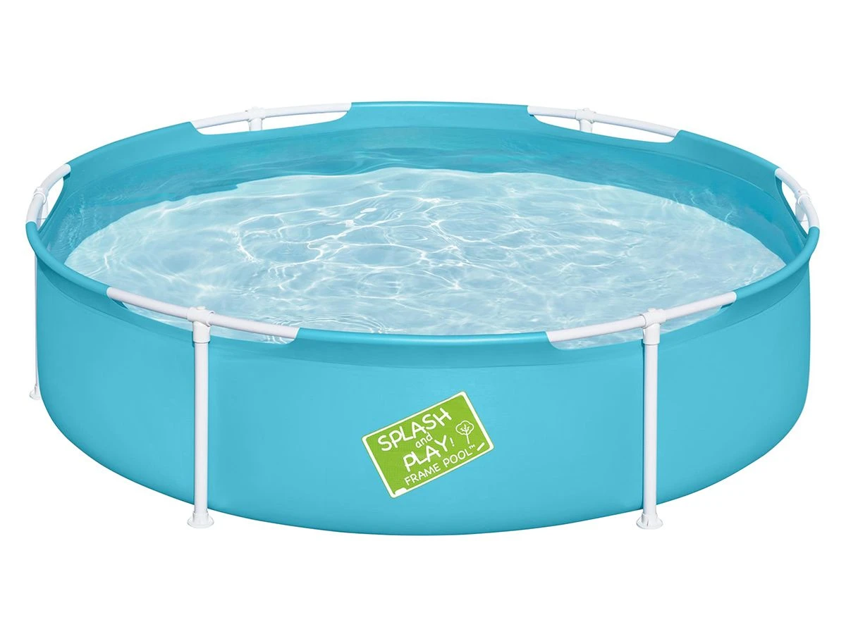 Het Bestway My first frame pool zwembad, is een bovengronds frame zwembad met een diameter van 152 cm en een hoogte van 38 cm. Het frame zwembad is geschikt voor kinderen vanaf 2 jaar. Het Bestway My first frame kinderzwembad heeft een oestbestendig stalen frame en de wanden van sterk PVC. Het kinderzwembad heeft een watercapaciteit van 580 liter. Het Bestway zwembad is eenvoudig op te zetten en ook gemakkelijk weer op te bergen in de winter. Laat kinderen nooit zonde toezicht van een volwassene in het zwembad spellen.