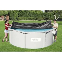 Deze ronde Bestway zwembad afdekhoes is geschikt voor zwembaden met een diameter van 396 cm en is gemaakt voor de Bestway Steel Pro en Power Steel zwembaden. De afdekhoes is voorzien van touwtjes zodat deze vast gezet kan worden. Kleine gaatjes in de Bestway afdekhoes voorkomen water ophoping. De zwembad afdekhoes gaat vervuiling van het zwemwater tegen.