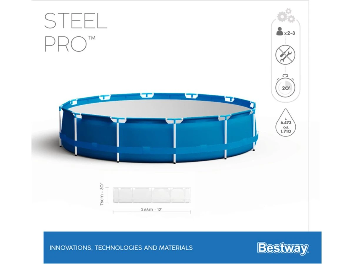 In de doos vindt u: zwembad, patroonfilterpomp, reparatiefolie.