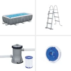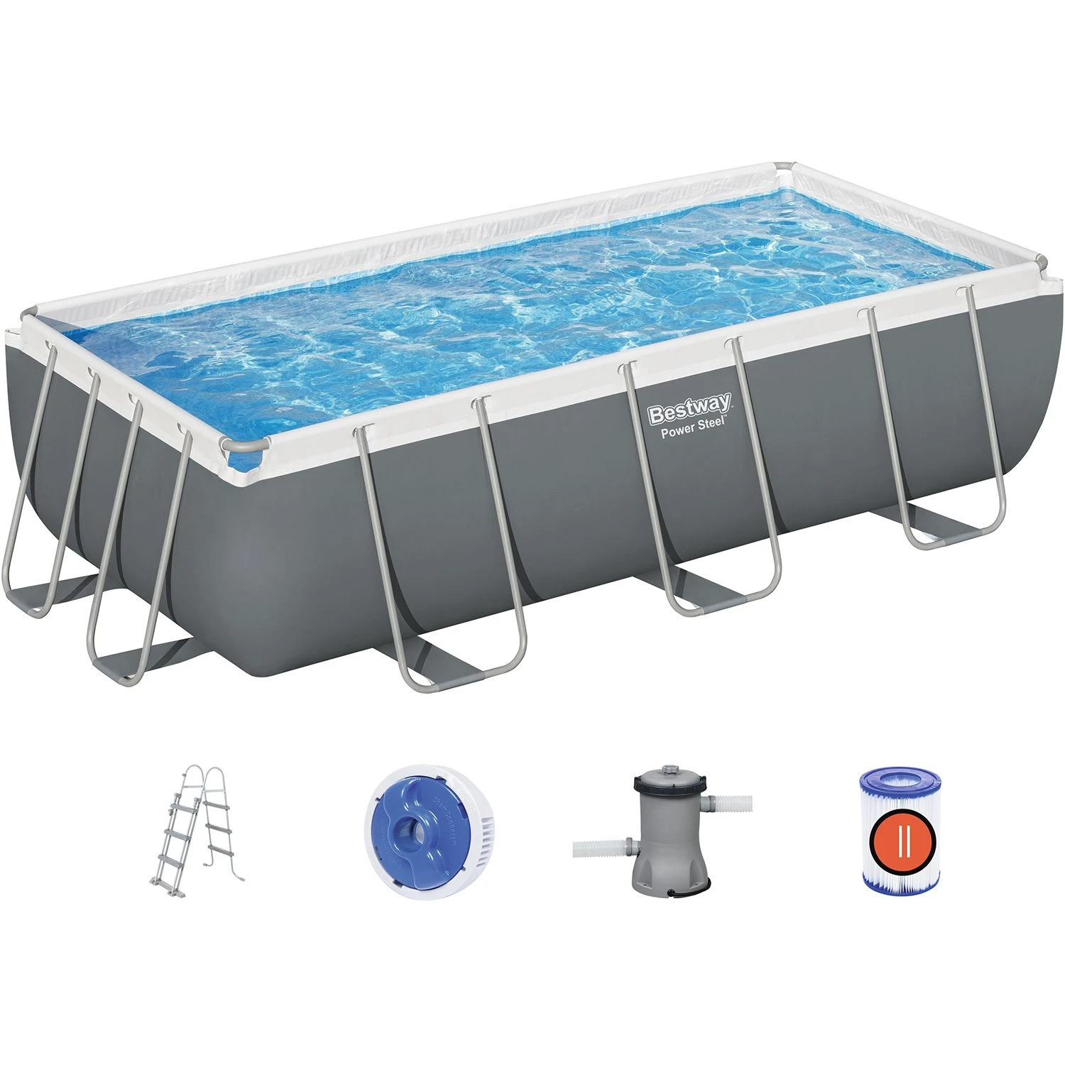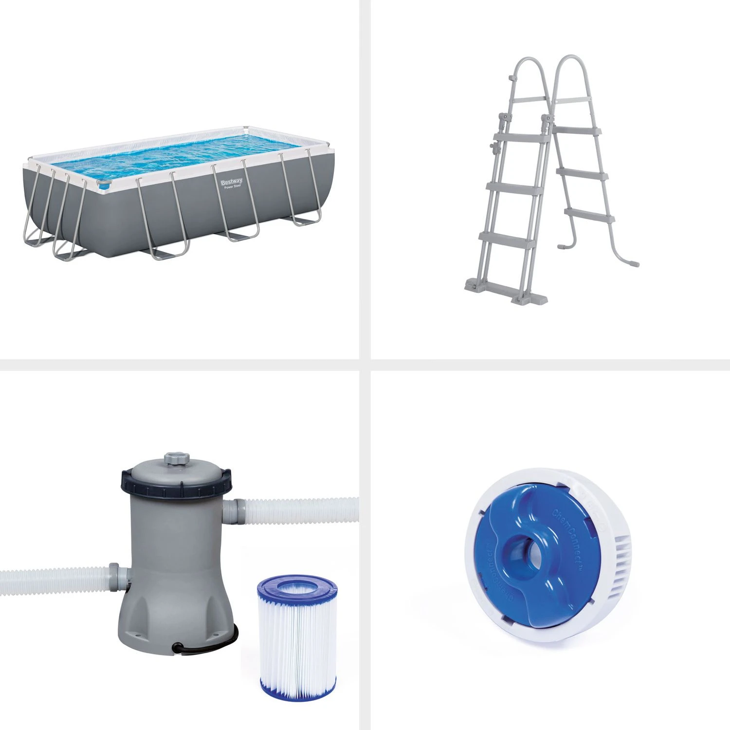 -Bovengronds rechthoekig frame zwembad met filterpomp en trap
