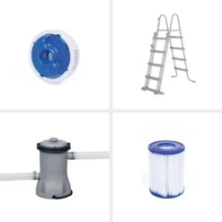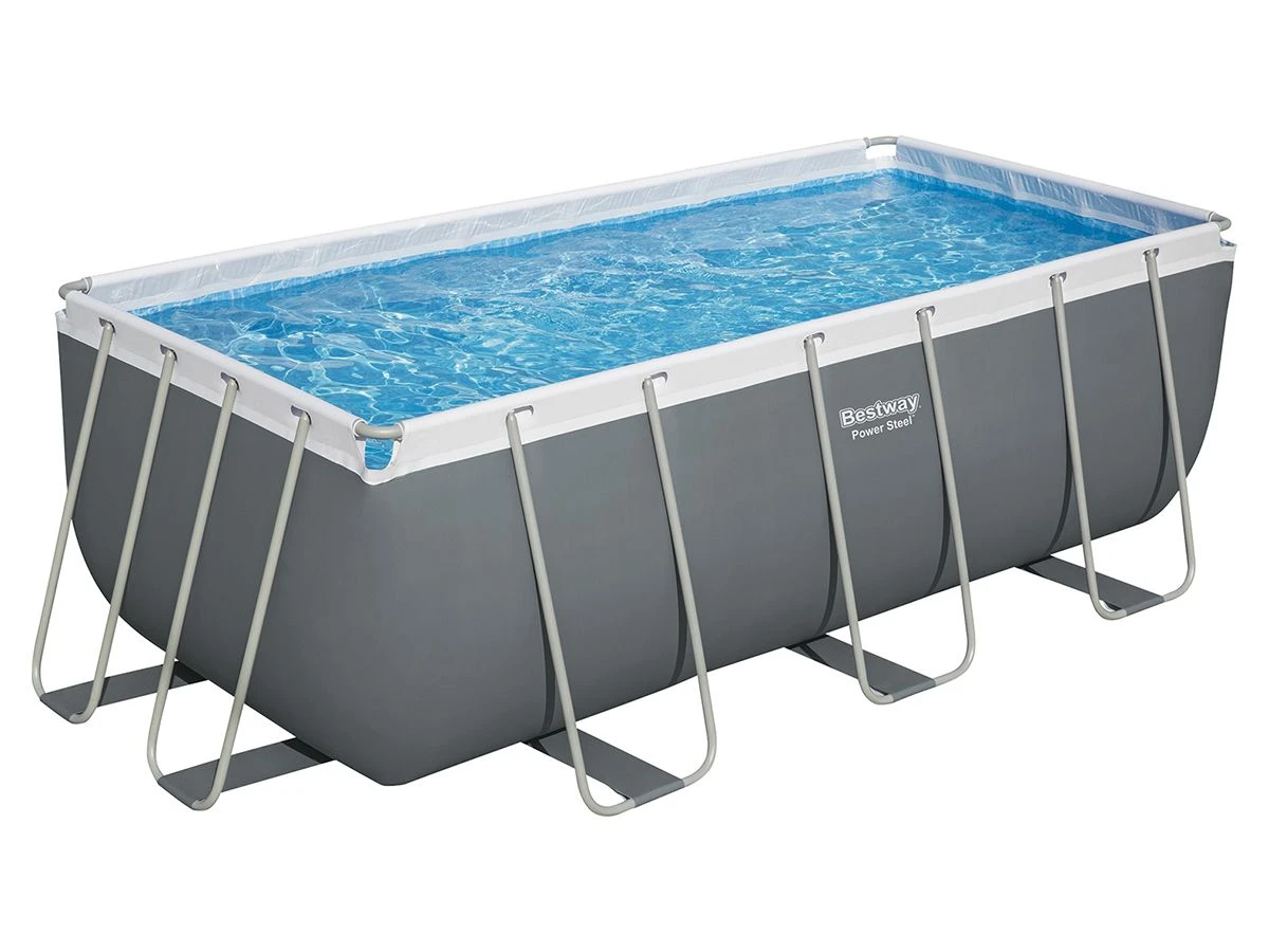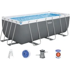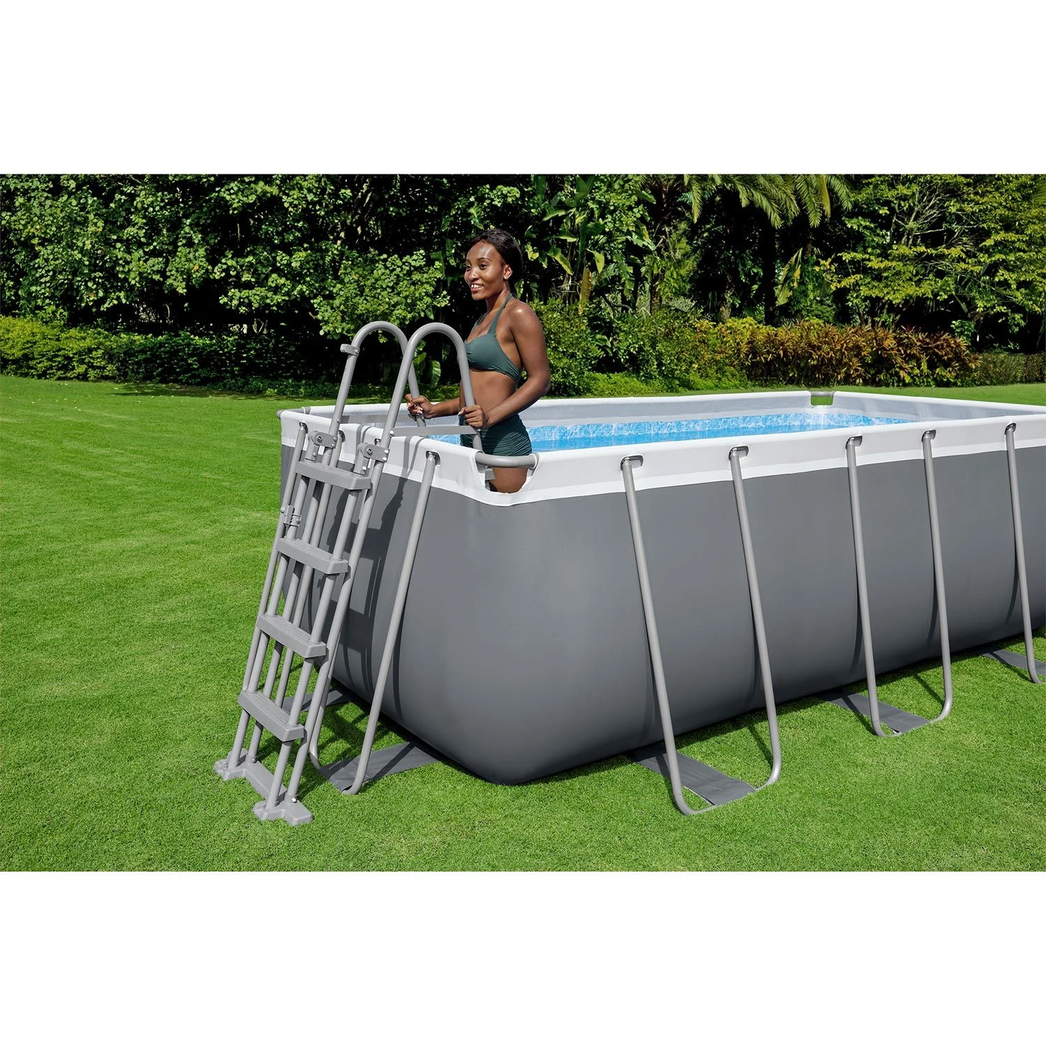 -Bovengronds rechthoekig frame zwembad met filterpomp en trap