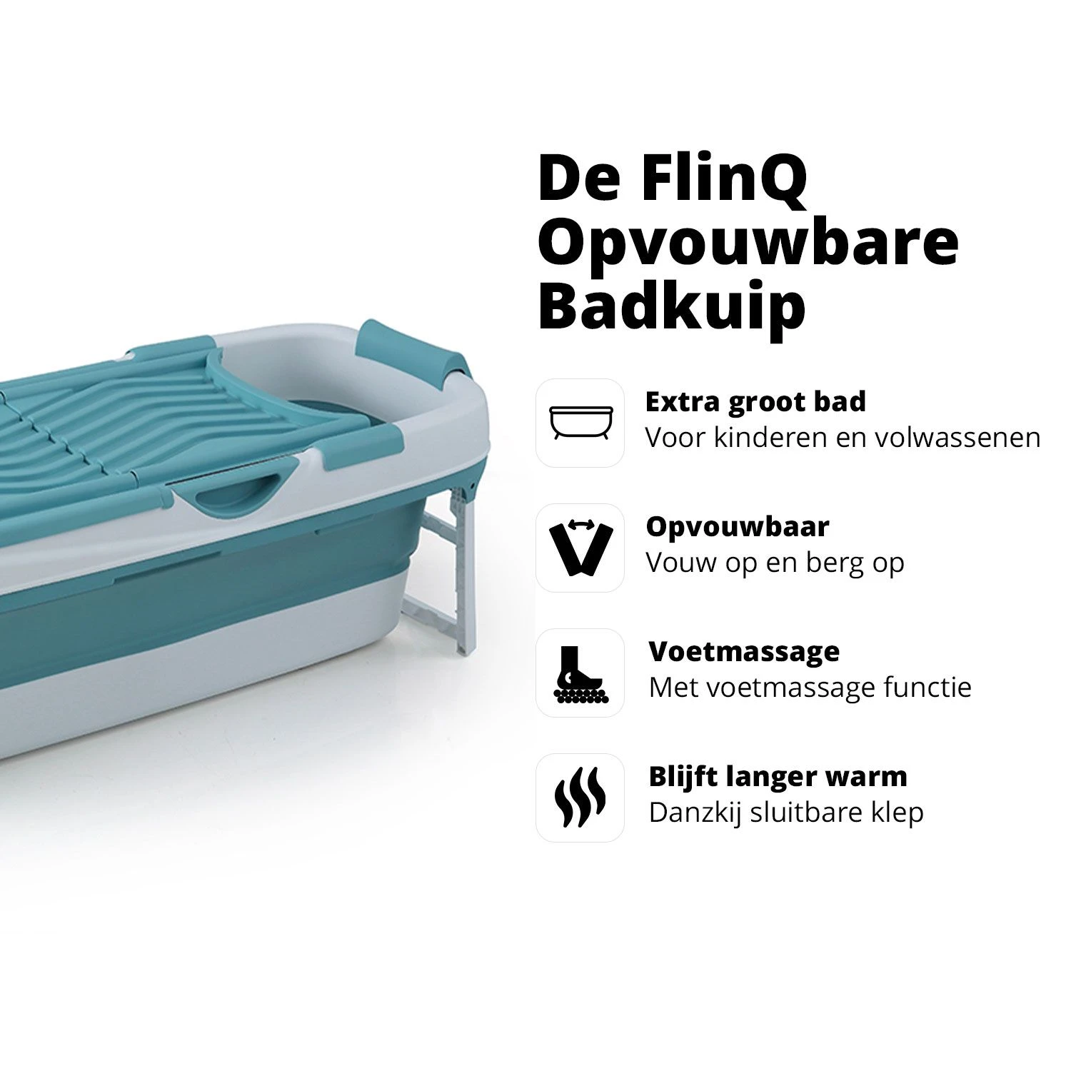 Je hebt altijd ruimte voor jouw ik-momentje met dit gemakkelijk in te klappen ligbad van FlinQ! Hoe ziet jouw ideale thuis Spa eruit? Een bad nemen met de kaarsen aan? Heb je een serietje aan of liever een boekje erbij? Dit is nu ook mogelijk voor iedereen die geen ingebouwd bad in hun badkamer heeft. Met dit inklapbare bad tover je in enkele minuten je badkamer om in je eigen thuis Spa! Belangrijkste punten op een rij: Voor iedereen die houdt van een bad, maar er geen een heeft! In enkele minuten opgezet of ingeklapt Je vindt altijd wel een plekje waar je het kan opbergen na gebruik (22 cm hoog) Houd het water langer warm door afdekkap Afdekkap ook geschikt voor het plaatsen van laptop of drinken Afmetingen uitgeklapt: 158 x 60 x 53 cm (l x b x h) Leeglopen door middel van afvoerslang Inclusief voetmassage functie In 1 minuut opgezet: Jouw ik-momentje moet vooral gecreëerd kunnen worden zonder enige moeite. Daarom is dit bad zo ontworpen dat je het binnen 1 minuut uit elkaar klapt. Laat het bad vervolgens vollopen en klaar! Als je lekker tot rust gekomen bent en het uit bad gaat, laat je het bad leeglopen via de afvoerslang en zonder enige moeite klap je het bad weer in elkaar. Geschikt voor volwassenen: Dit ligbad met een lengte van 158 cm is geschikt voor zowel mannen als vrouwen. Je kunt heerlijk languit liggen met je benen gestrekt. Door het zitvlak blijf je goed zitten en zit je lekker comfortabel. Dit ligbad is het grootste mobiele bad van ons. Wij raden altijd aan om eerst even te kijken of het daadwerkelijk in jouw badkamer past. Past het niet? Geen probleem! Kijk dan even naar ons zitbad, hiermee kun je alsnog een jouw thuis Spa creëren! Van alle gemakken voorzien: Dit ligbad beschikt over alles wat jouw momentje nog fijner maakt: een afdekkap die het water langer warm houdt, een opbergbakje, neksteun, een houder voor de douchekop voor als je wat water erbij wilt doen en een voetmassagefunctie. Over FlinQ: Wij staan al jaren bekend om ons brede assortiment aan mobiele badkuipen. Van zitbaden tot opvouwbare ligbaden: we hebben altijd een bad dat geschikt is voor jouw badkamer. Onze snelle service, goede kwaliteit spullen en lange garantie hebben ervoor gezorgd dat al meer dan 7.500 klanten ons hebben beoordeeld met een 8. Iets waar wij natuurlijk super blij mee zijn!