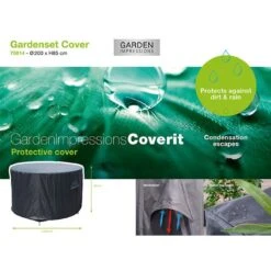 De tuinset beschermhoezen van Garden Impressions zijn gemaakt van hoogwaardig polyester met een ademende coating. Deze coating zorgt ervoor dat hoes waterbestendig is. De hoes is niet volledig waterdicht, maar waterafstotend. Het is een flexibele ademende coating, waardoor de hoes in de wintermaanden ook nog flexibel blijft. Doordat de tuinsethoes niet volledig waterdicht is, is aan te raden om een afstand te creëren tussen de meubelen en de hoes. Het water kan er dan gemakkelijker afstromen en de meubelen kunnen niet verstikken.