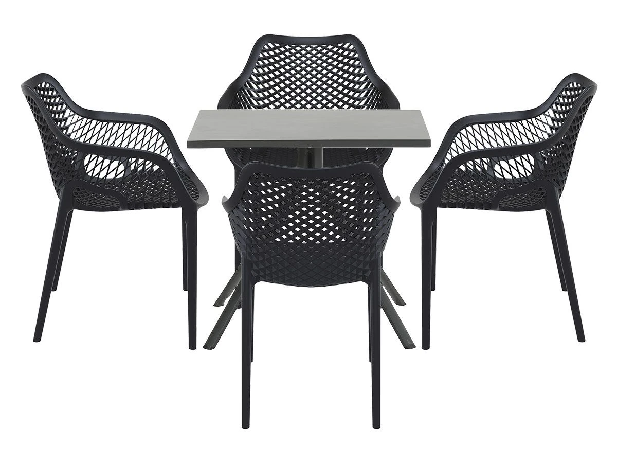 De kunststof tuinstoelen zijn vervaardigd uit een onderhoudsvrije hoogwaardig kunststof. De tuinstoelen zijn voorzien van een hoog UV-filter waardoor de kleur wordt behouden. De Rimini tuintafel van Garden Impressions is vervaardigd uit een aluminium frame voorzien van een stevige poeder coating laag.