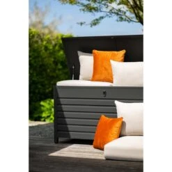 Door zijn moderne en eigentijdse design past deze kussenbox perfect in elke tuin. De Cambridge kussenbox is gemaakt van aluminium, wat sterk is, gemakkelijk schoon te maken en er prachtig uitziet. Het deksel opent moeiteloos met een gasveer.