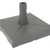 Het gewicht van de parasolvoet is 40 kilo. De afmeting is 45 x 45 centimeter. De hoogte van het graniet is 7 cm, inclusief parasolhouder is dat 40 cm.