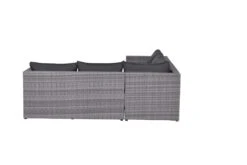 Mooie, compacte loungeset waarin je heerlijk tot rust kunt komen. In deze loungeset kun je een lekker drankje doen, maar ook liggend een boek lezen in het zonnetje. Het is al jaren één van de meest populaire loungesets uit de collectie. Met deze set geniet je echt van iedere zomerse dag. De Lyon loungeset past door zijn vorm en afmetingen in vrijwel iedere tuin. De Lyon loungeset bestaat uit twee ruime lounge bankdelen, één hoek element en één tafel met geharde glasplaat. De losse onderdelen van deze set zijn door middel van clips aan de onderzijde aan elkaar te bevestigen, zodat de elementen niet kunnen verschuiven. Deze weerbestendige set is gemaakt van een stevig aluminium frame met daaromheen een kwalitatief wicker vlechtwerk draad in de kleur organic grey. Dit wicker is gemaakt van stevig kunststof waardoor de set zeer duurzaam is. Uiteraard wordt deze loungeset geleverd inclusief zit- en rugkussens. De kussens zijn voorzien van een rits waardoor de hoezen gemakkelijk met de hand gewassen kunnen worden. De kussens zijn niet 100% waterdicht, maar zijn wel voorzien van een waterafstotende coating. Dit is vooral erg praktisch als er bijvoorbeeld op het kussen wordt gemorst met drinken. Je veegt het vocht er namelijk gemakkelijk weer af. Na gebruik kunnen de kussens opgeborgen worden in de schuur of in een kussenbox. De afmetingen van deze setopstelling zijn: L 211 x B 211 cm. De tafel is 65 cm lang, 65 cm breed en 33 cm hoog. Een uitgebreide collectie loungesets vind je binnen de categorie tuinmeubelen. Tuinmeubelen van verschillende mooie merken.