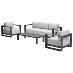 Deze loungeset is vervaardigd uit een onderhoudsvrij en weerbestendig aluminium frame met een stevige poedercoating. De Malakka loungetafel dient nog gemonteerd te worden. De poten moeten op een eenvoudige manier onder de tafel worden gemonteerd. Het tafelblad is al één geheel. Het echte genieten kan daarna beginnen! De meegeleverde kussens zijn gemaakt van een hoogwaardige kwaliteit polyester.