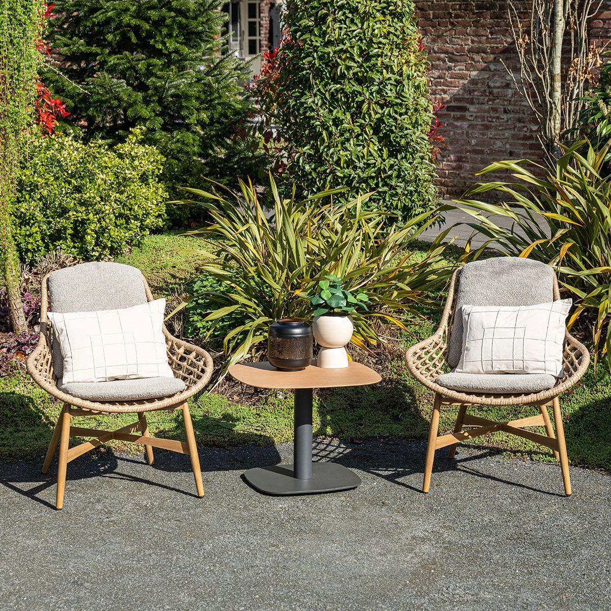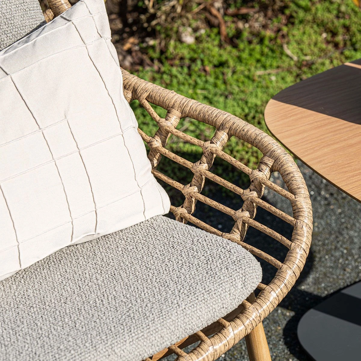 Op zoek naar een leuke loungestoel voor in jouw tuin of overkapping? Bekijk dan deze prachtige Pico loungestoel met comfortabele kussens. De Pico is een echte kuipstoel en eenvoudig te combineren bij andere loungesets. De loungestoel heeft een natuurlijk uitstraling door het kleur gebruik en het wicker vlechtwerkdraad. De Pico loungestoel heeft een frame dat gemaakt is van stevig aluminium. Het kuip gedeelte van de loungestoel is van aluminium met daaromheen wicker vlechtwerkdraad in de kleur natural. Aluminium heeft als voordeel dat het onderhoudsvrij is, wanneer het aluminium vies is geworden door bijvoorbeeld opspattend regenwater kun je dit eenvoudig schoonmaken met een sopje van groene zeep en een zachte doek. De comfortabele kussens zijn niet 100% waterdicht, maar zijn wel voorzien van een waterafstotende coating. Dit is vooral erg praktisch als er bijvoorbeeld op het kussen wordt gemorst met drinken. Je veegt het vocht er namelijk gemakkelijk weer af. Na gebruik kunnen de kussens opgeborgen worden in de schuur of in een kussenbox. De loungestoel heeft een afmeting van 80 bij 75 cm en is 87,5 cm hoog.