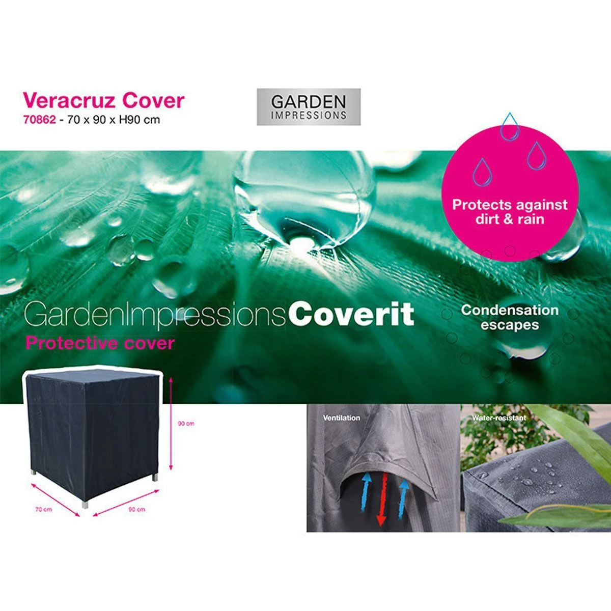 Ben je op zoek naar een beschermhoes voor jouw Santa Rosa relax fauteuil? Deze prettige beschermhoes van kwaliteitsmerk Garden Impressions zorgt ervoor dat je langer plezier zal hebben van jouw tuinmeubelen. Om de levensduur van je tuinmeubelen te verlengen, raden wij aan om deze af te dekken in de wintermaanden. De beschermhoezen van Garden Impressions zijn gemaakt van hoogwaardig polyester met een ademende coating. Deze coating zorgt ervoor dat hoes waterbestendig is. De hoes is niet volledig waterdicht, maar waterafstotend. Het is een flexibele ademende coating, waardoor de hoes in de wintermaanden ook nog flexibel blijft. Doordat de hoes niet volledig waterdicht is, is aan te raden om een afstand te creëren tussen het tuinmeubel en de hoes. Het water kan er dan gemakkelijker afstromen en het tuinmeubel kan niet verstikken. De beschermhoes is voorzien van ventilatie driehoeken zodat het tuinmeubel kan ademen. De hoes kan gemakkelijk om de Santa Rosa stoel worden bevestigd. Op alle hoeken zit onderaan een elastieken band om de hoes strak te houden. We raden je aan om de kussen niet onder de hoes te laten liggen. Mocht de kussens al nat zijn geworden, is dat niet erg maar zorg er wel voor dat ze droog worden opgeborgen. Beschermhoes voor de Santa Rosa stoel met afmeting 70x90xH90 cm.