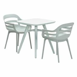 De Sunny tuinstoel heeft een afmeting van 58,5 bij 56 cm en is 80,5 cm hoog. De bistro tuintafel is 71 bij 71 cm en is 74 cm hoog. Zowel de tuinstoel als bistro tuintafel hebben de kleur olijf.