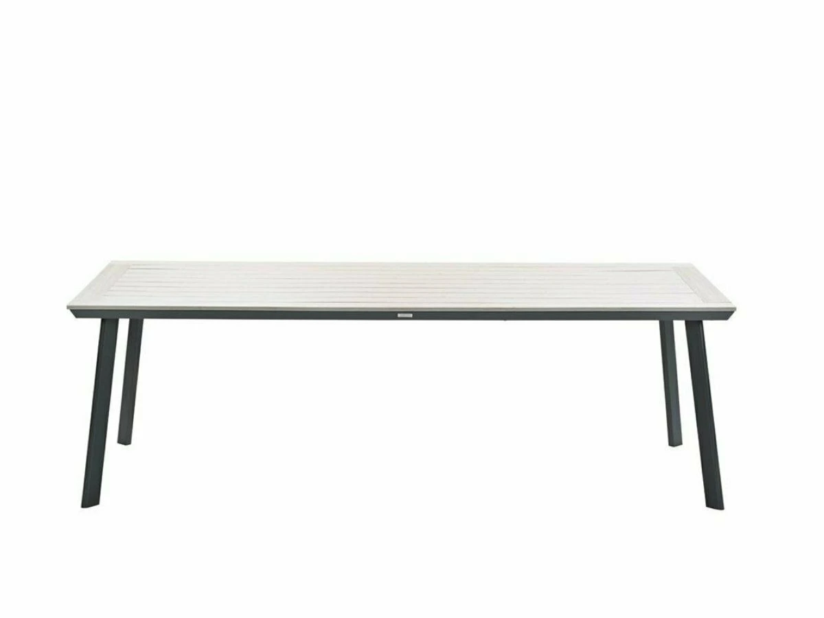 Deze tuintafel is ontworpen met oog voor detail en duurzaamheid. Het tafelblad is gemaakt van Polywood in de warme kleur Light Teak. Polywood is een materiaal dat gemaakt is van kunststof, maar eruitziet als hout, ook is Polywood onderhoudsarm en weerbestendig is. Het aluminium frame met poedercoating in antraciet biedt stabiliteit en een modern design. Met een afmeting van 230 x 100 x 73 cm biedt de tafel voldoende ruimte, terwijl de hoogte van 68 cm onder de tafel comfortabel plaats biedt aan stoelen. Voor optimaal behoud raden we aan de tafel te reinigen met een speciale Polywood cleaner en te behandelen met een Polywood Protector. Zo geniet je nóg langer van jouw stijlvolle tuintafel!