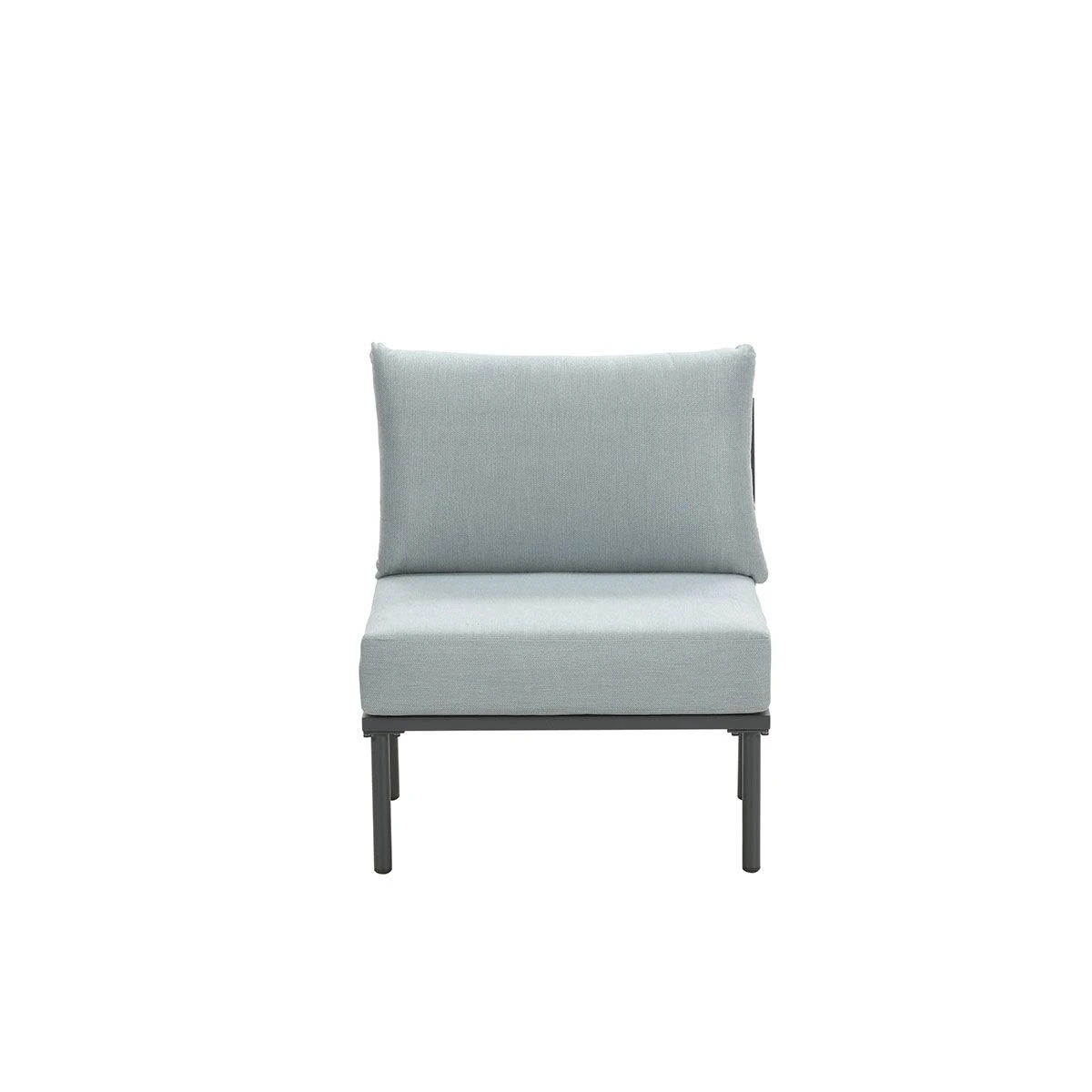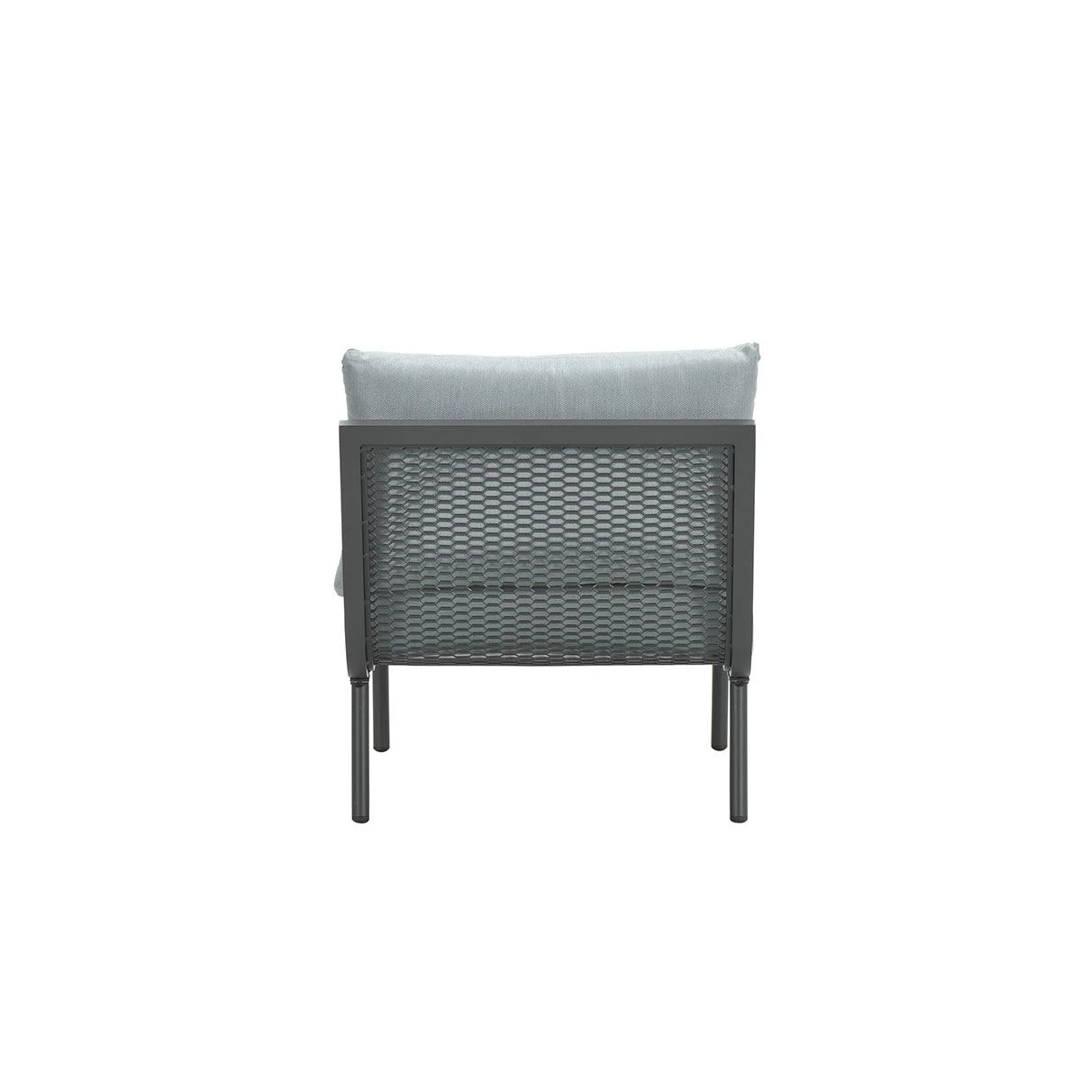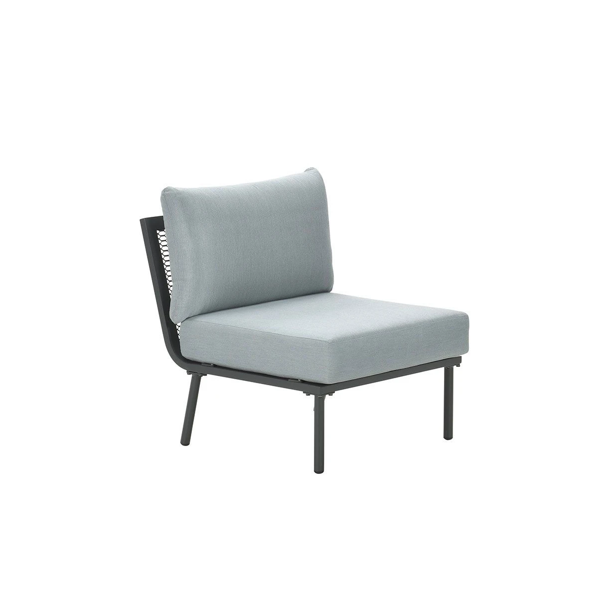 Wil jij een loungeset helemaal zelf samenstellen? Dat kan met de Vivero serie van Garden Impressions. Dit midden element is gemaakt van een onderhoudsvrij aluminium. Dit frame heeft een open structuur, waardoor de kussens goed zichtbaar zijn en de set een luchtige uitstraling krijgt. Het midden element is gemaakt van onderhoudsvrij en weerbestendig aluminium frame met een stevige poedercoating. Deze laag zorgt ervoor dat het frame kras en stootvast is. De meegeleverde kussens zijn gemaakt van hoogwaardig kwaliteit polyester. De kussens zijn voorzien van een rits waardoor de hoezen gemakkelijk met de hand kunnen worden gewassen. De kussens zijn niet waterbestendig en kunnen na gebruik worden opgeborgen in de schuur of kussenbox. Wel zijn de kussens voorzien van een waterafstotende coating. Dit is vooral erg praktisch als er bijvoorbeeld op het kussen wordt gemorst met drinken. Je veegt het vocht er namelijk gemakkelijk weer af.Het midden element wordt volledig gemonteerd geleverd, maar dient nog uitgepakt te worden. Het element wordt goed verpakt geleverd zodat er geen beschadigingen tijdens transport op komen. Het echte genieten kan daarna beginnen! De Vivero serie bestaat uit drie onderdelen: een hoek element, midden element en een hocker. Deze set is leverbaar in één kleur variatie: donker grijs met mint grijze kussens.