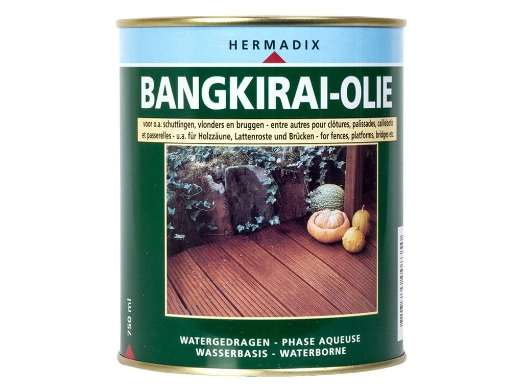De olie kan worden aangebracht met een kwast. Hij kan op nieuw en vergrijsd Bangkirai- en ander hardhout worden toegepast.
