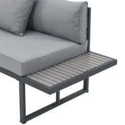 Geniet van het comfort van de St. Tropez tuinmeubellounge met tafel, plank en kussens. De moderne zitlounge van staal en hout is perfect voor iedereen die de voorkeur geeft aan een stijlvolle sfeer in de eigen buitenruimte. Met zijn moderne design en hoekige vormen is de tuinlounge een eyecatcher voor elke tuin, balkon of terras. Het bevat ook alles wat je nodig hebt voor ontspannende uurtjes buitenshuis. Overtuig uzelf van het meubel voor 4 personen, dat functionaliteit, stijl en comfort combineert.