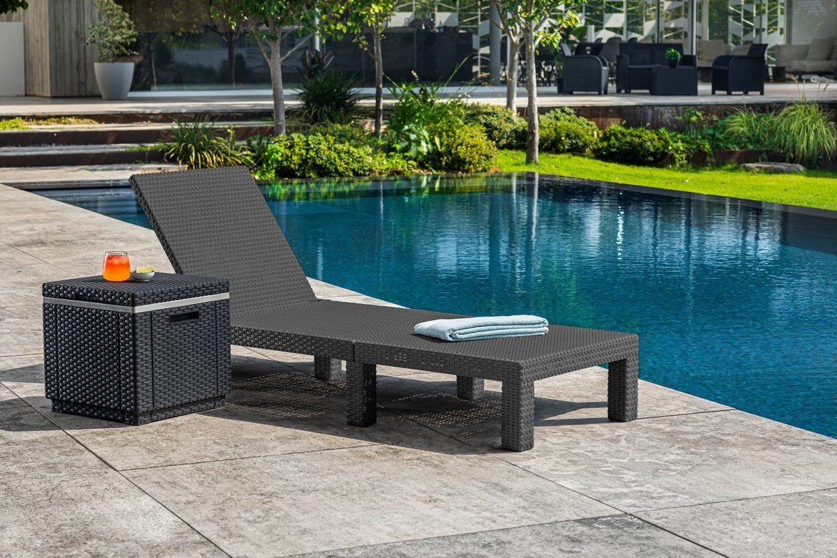Dit Allibert Daytona Ligbed is gezien de textuur, de uitstraling en de hoogte prima te combineren met onderstaande bijzettafel van Allibert