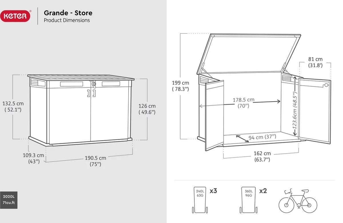 -Bouwpakket voor Keter Cortina Mega Opbergkast – 190.5×109.3×132.5cm – Donkergrijs