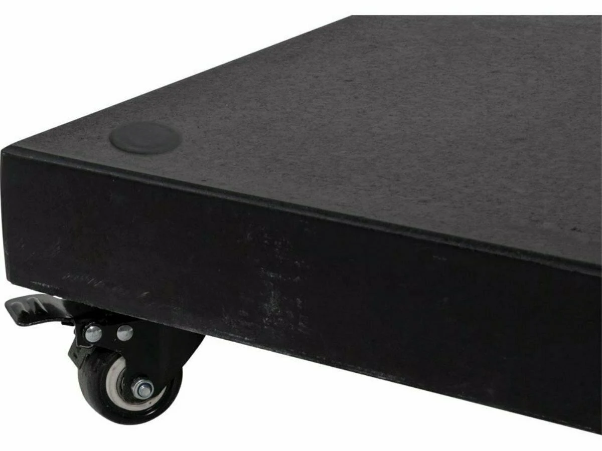 Deze parasolvoet, gemaakt van graniet, combineert stabiliteit met gemak. Dankzij de vier zwenkwielen met rem verplaats je jouw parasol moeiteloos naar de perfecte plek en zet je hem veilig vast. Geschikt voor parasols met een stokdiameter tot 48 mm. Met een compact formaat van 55 x 55 cm, past deze parasolvoet in elke buitenruimte. Kies voor stevigheid, duurzaamheid en flexibiliteit, kies de Lesli Living 60 kg verrijdbare parasolvoet!