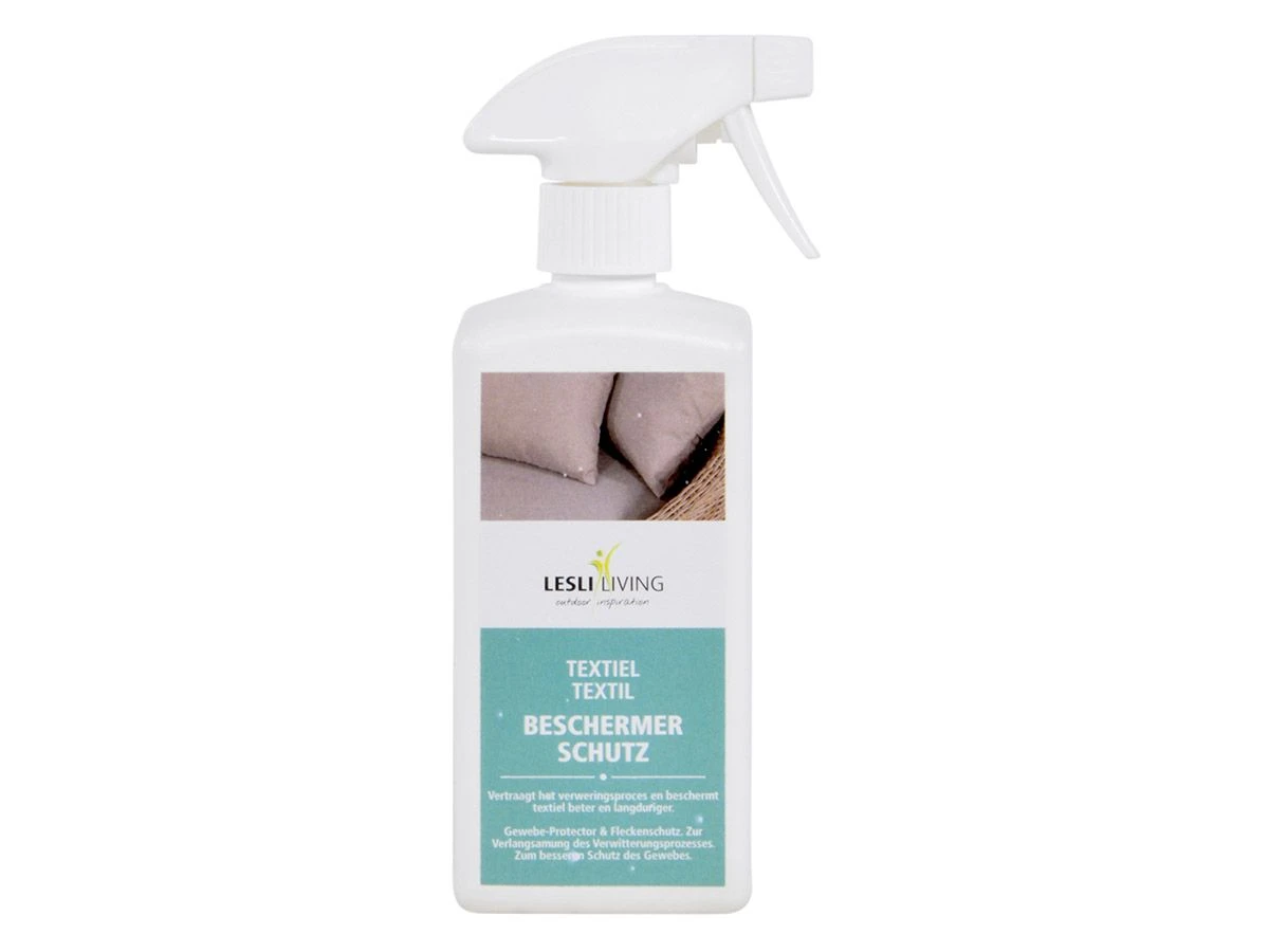 Wil jij zo lang mogelijk genieten van het textiel in je tuin? Bijvoorbeeld je tuinkussens, parasoldoek of tuinmeubel bekleding. Bescherm deze dan met de textiel beschermer van Lesli Living. De textiel beschermer vertraagt het verweringsproces door verschillende weersinvloeden en beschermt het textiel beter en langduriger.