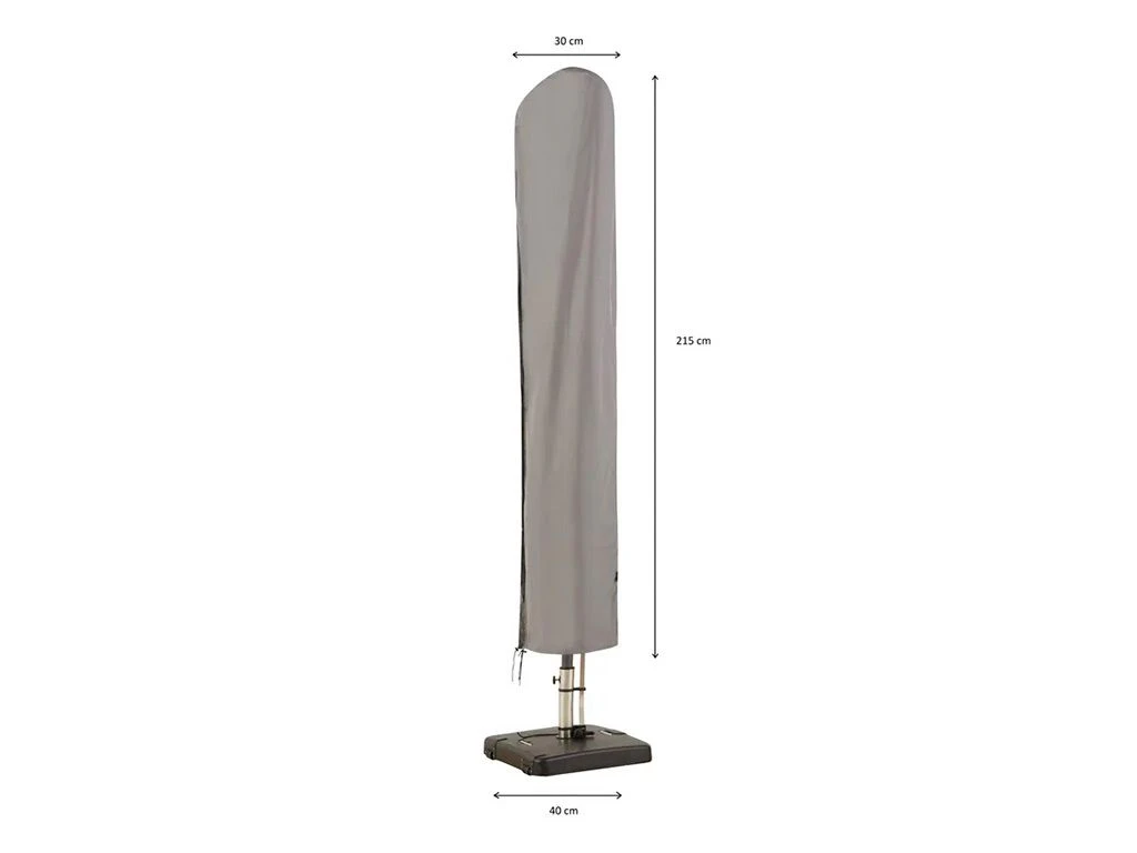 Deze parasolhoes heeft een afmeting van 215 x 40 cm en is voorzien van een ritssluiting om hem makkelijk over je parasol te trekken.