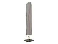 Het is handig om je parasol tijdens de zomer gewoon buiten te kunnen laten staan. Maar het doek kan verkleuren of vies worden door verschillende weersinvloeden. Om je parasol hiertegen te beschermen kun je gebruik maken van een waterafstotende parasolhoes. Ook sluit deze hoes de parasol goed af zodat er geen windvlaag onder kan komen.