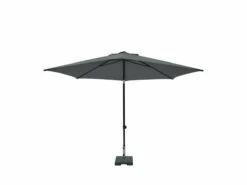 Het parasoldoek is gemaakt van 100% polyester (180g/m²) met een PA-coating, wat zorgt voor een waterafstotende werking en langdurige duurzaamheid in de buitenlucht. De parasol heeft 6 stevige baleinen en een stokdiameter van 35 mm, wat zorgt voor stabiliteit en stevigheid.