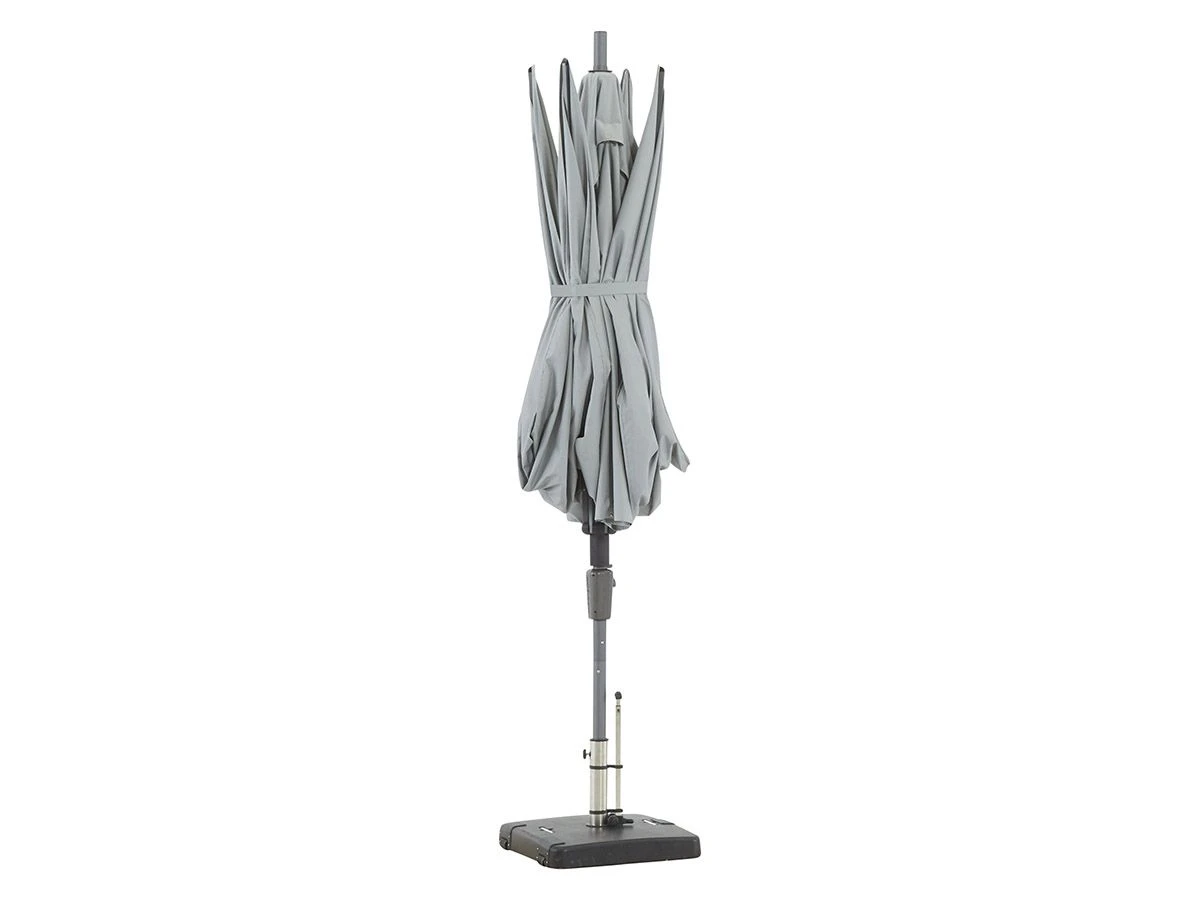 De parasol heeft 220 gram/m² polyester doek met een PA coating. Hierdoor is het doek erg sterk en waterafstotend. Het doek heeft een UPF-waarde van 50+, hiermee ben je erg goed beschermd tegen de zon.