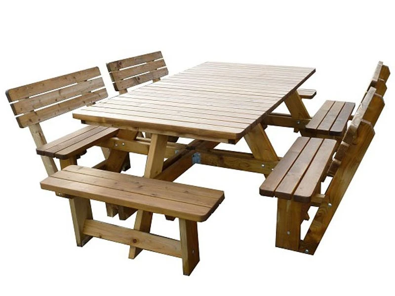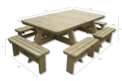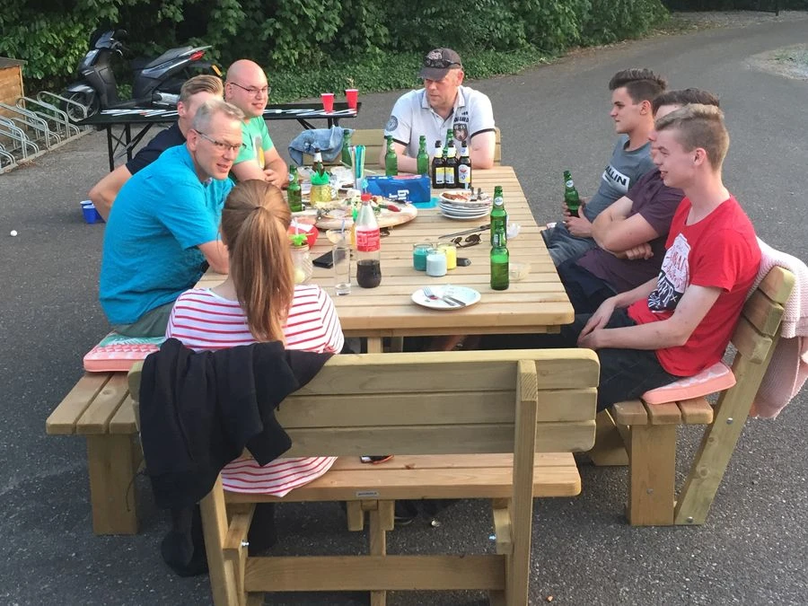Door de openingen tussen de zittingen kun je gaan zitten zonder je benen te hoeven optillen, fijn voor kinderen en oudere mensen! De 4 bijgeleverde rugleuningen bieden een extra comfortabele zit voor iedereen. De Tallin picknicktafel is een aanwinst voor grote gezinnen, horeca terrassen en sportverenigingen. Voor deze picknicktafel zijn diverse 5 cm dikke picknicktafel kussens beschikbaar.