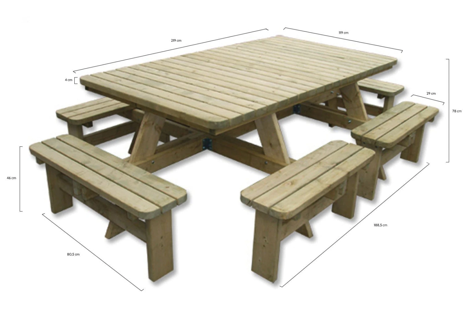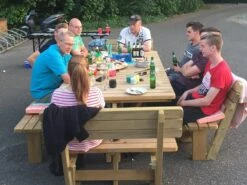 Opzoek naar een echt grote picknicktafel? Onze 300 cm houten picknicktafel Tallinn is dan echt een perfecte tafel! Met maar liefst 12 zitplaatsen kun je er veel mensen aan kwijt, en is hij ideaal voor een goede borrel! Dankzij de rugleuningen zit je ook nog eens extra lekker. Een paar mooie kussens erbij en je hebt een sfeervol geheel.