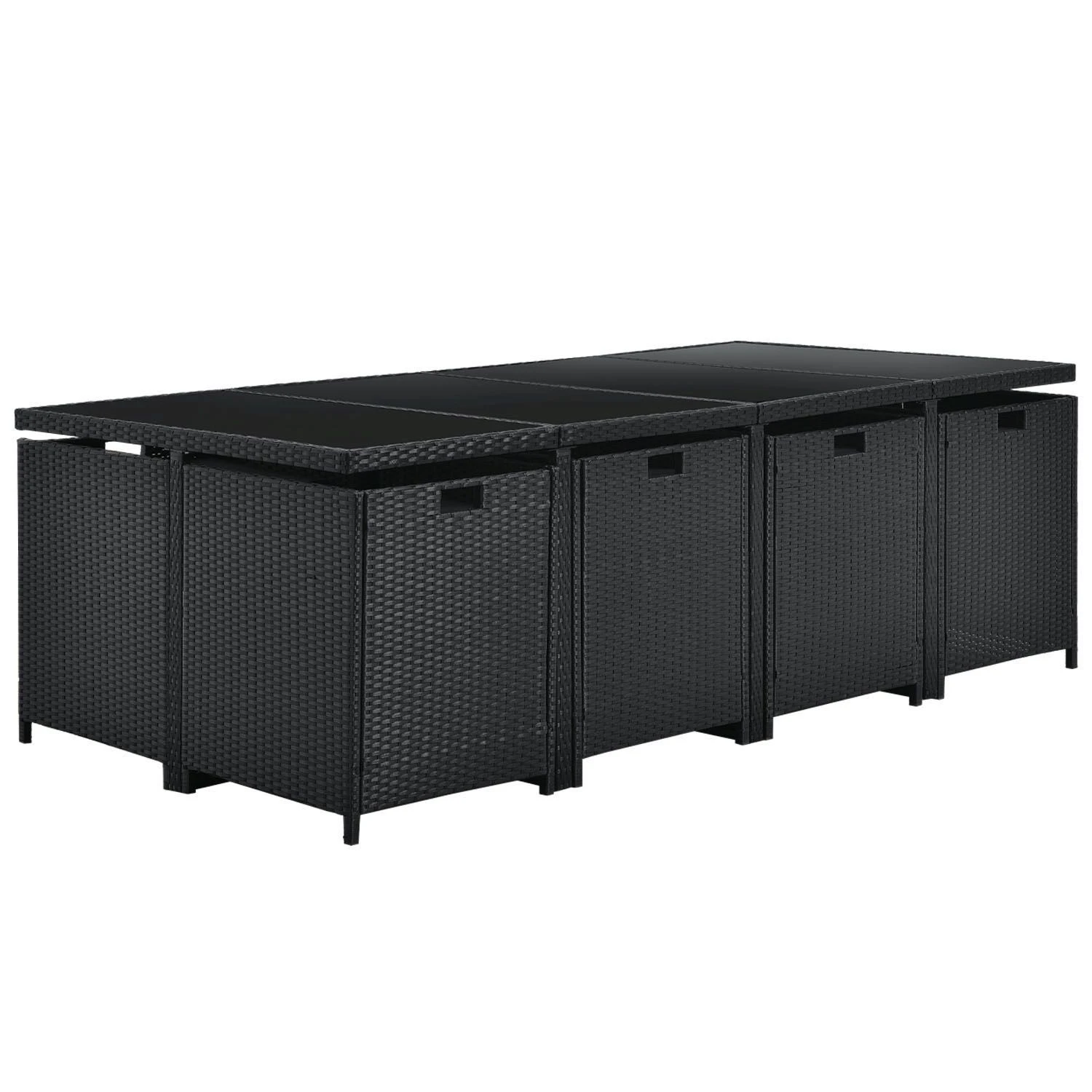 Lange, warme zomeravonden bieden de perfecte gelegenheid voor een gezellig samenzijn met vrienden of familie. Onze grote 13-delige tuinset biedt plaats aan maximaal 12 personen en maakt tegelijkertijd indruk met zijn verbazingwekkende ruimtebesparende opbergtechniek als kubus. De grote poly rotan zitset in effen zwart en grijs oogt modern en past perfect in je tuin of op je terras. De buitenzitgroep is zowel optimaal te gebruiken als eettafel als als loungebank om in te relaxen.
