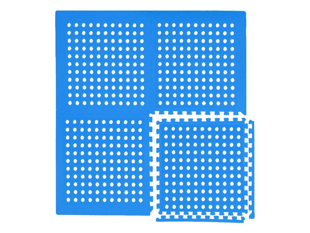 Wij raden u aan om ook onder een rond zwembad een vierkante zone aan te leggen. Als u van rond houdt: u kunt de matten en de rand gemakkelijk op maat snijden met een scherp mes.