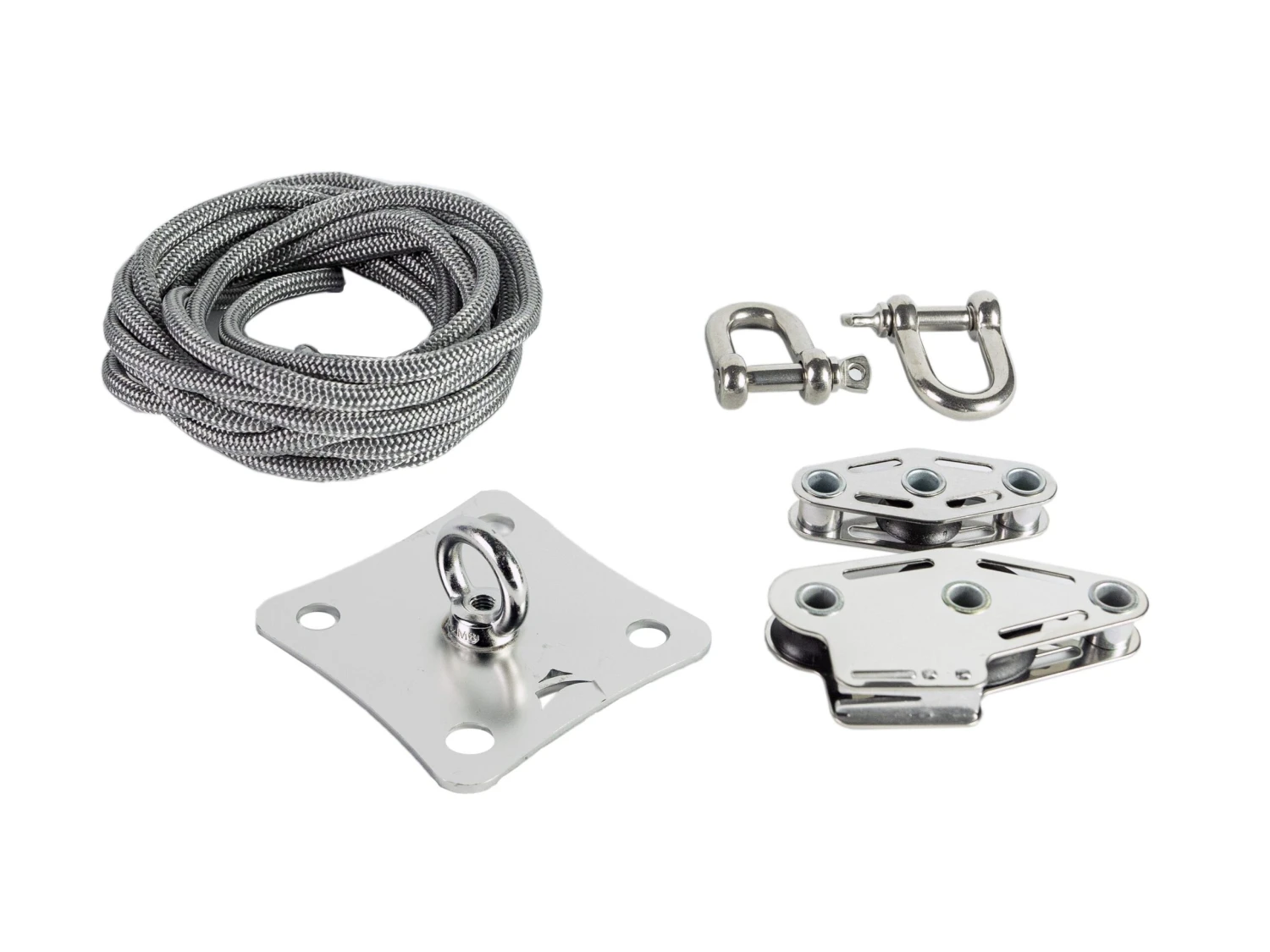 Wilt u uw schaduwdoek professioneel aan de huismuren bevestigen en zo strak mogelijk spannen? De Muscle x3 Bevestigingsset bevat een robuuste roestvrijstalen plaat, 2 D-sluitingen, 1 stalen katrol, 1 stalen katrol met vergrendeling en 4 meter zeillijn. Muscle x3 geeft het zeil maximale spanning om het strak te maken en bestand tegen wind en regen.