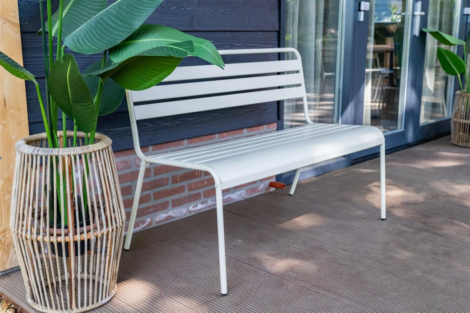 Dit is tuinbankMax in ivoor. Als tegenhanger voor de zwarte industriële look zien we weer steeds meer ingetogen zachtetinten terugkomen voor het inrichten van je huis en tuin, denk bijvoorbeeld aan beige, ecru, zand en ivoor.Deze trendkleuren geven rust, laat juist andere kleuren stralen en passenbij iedere iedere woonstijl!