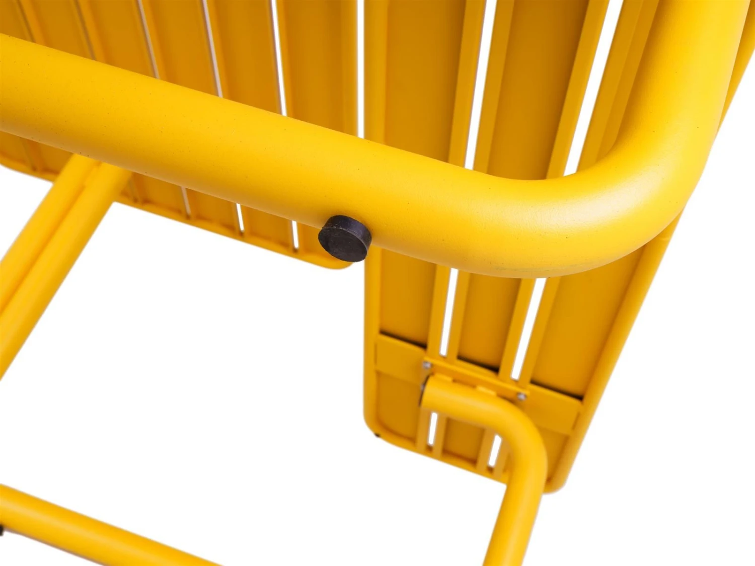 Waarom worden we zo blij van onzeokergele metalen picknicktafel Max?