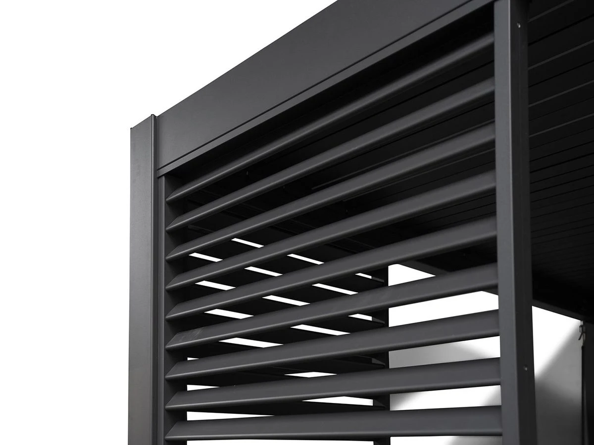 Belangrijke informatie-Het Mirador Louvre shutter paneel wordt per stuk geleverd-3shutter panelen bedekt een 3 meter kant volledig-De lamellen kunnen niet kantelen en staan vast-Niet geschikt voor de Mirador Basic modellen-Dit Mirador Louvre Shutterpaneel is alleen geschikt voor Mirador overkappingen-