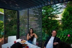 Dit Orion Louvre shutter paneel is een echte aanwinst voor jouw Orion overkapping. Met dit shutter paneel zorg je voor meer privacy, zit je beschut tegen de wind en heb je geen last van een laaghangende zon. Door het unieke ontwerp bevestig je het zijscherm volledig geïntegreerd in jouw pergola.Met de meegeleverde handleiding is het monteren van het shutter paneel zeer eenvoudig. De shutters van het shutter paneel zitten vast aan het paneel, deze zijn dus niet te kantelen. Het paneel is gemaakt van aluminium. De panelen worden per stuk geleverd. Je hebt 3 panelen nodig om een kant van 3,6 meter volledig af te dekken. Deze panelen zij modulair. Dit houdt in dat je de panelen op elke kant kan plaatsen zoals je dit wilt.