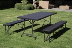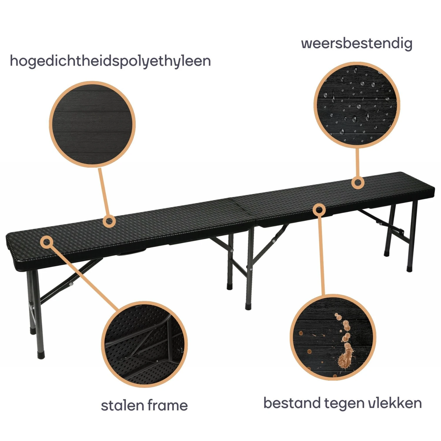 Van plan om te gaan kamperen, picknicken of barbecueën of heb je extra zitplaatsen nodig voor een feestje? Dan is deze inklapbare bank in rotanlook ideale oplossing! Het robuuste stalen frame garandeert een goede stabiliteit, het zitvlak is vlek- en weersbestendig. Hierdoor is de klapbank het hele jaar door zowel binnen als buiten te gebruiken. Eenmaal dichtgeklapt kan je de plooibank gemakkelijk overal mee naar toe nemen dankzij het handige handvat.