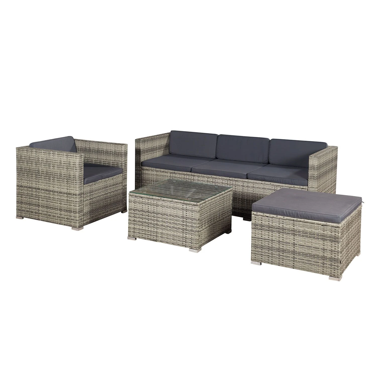 Ben je op zoek naar een comfortabele en grote loungeset voor in je tuin, terras of balkon? Met de zitset “Punta Cana L” verander je je buitenruimte in een stijlvolle plek om te ontspannen en je goed te voelen. Gezellige avonden met familie, vrienden of buren worden een belevenis in de buitenlucht. De unieke rotan look in grijs-beige met grijze vulling geeft je nieuwe loungemeubel een moderne charme. Creëer je eigen oase van welzijn om te ontspannen en samen te zitten.