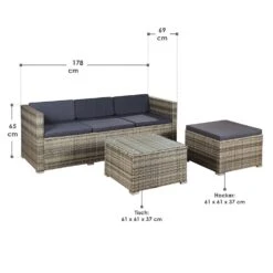 Ben je op zoek naar een comfortabele en grote loungeset voor in je tuin, terras of balkon? Met de zitset “Punta Cana M” verander je je buitenruimte in een stijlvolle plek om te ontspannen en je goed te voelen. Gezellige avonden met familie, vrienden of buren worden een belevenis in de buitenlucht. De unieke rotan look in beige-grijs met grijze vulling geeft je nieuwe loungemeubel een moderne charme. Creëer je eigen oase van welzijn om te ontspannen en samen te zitten.
