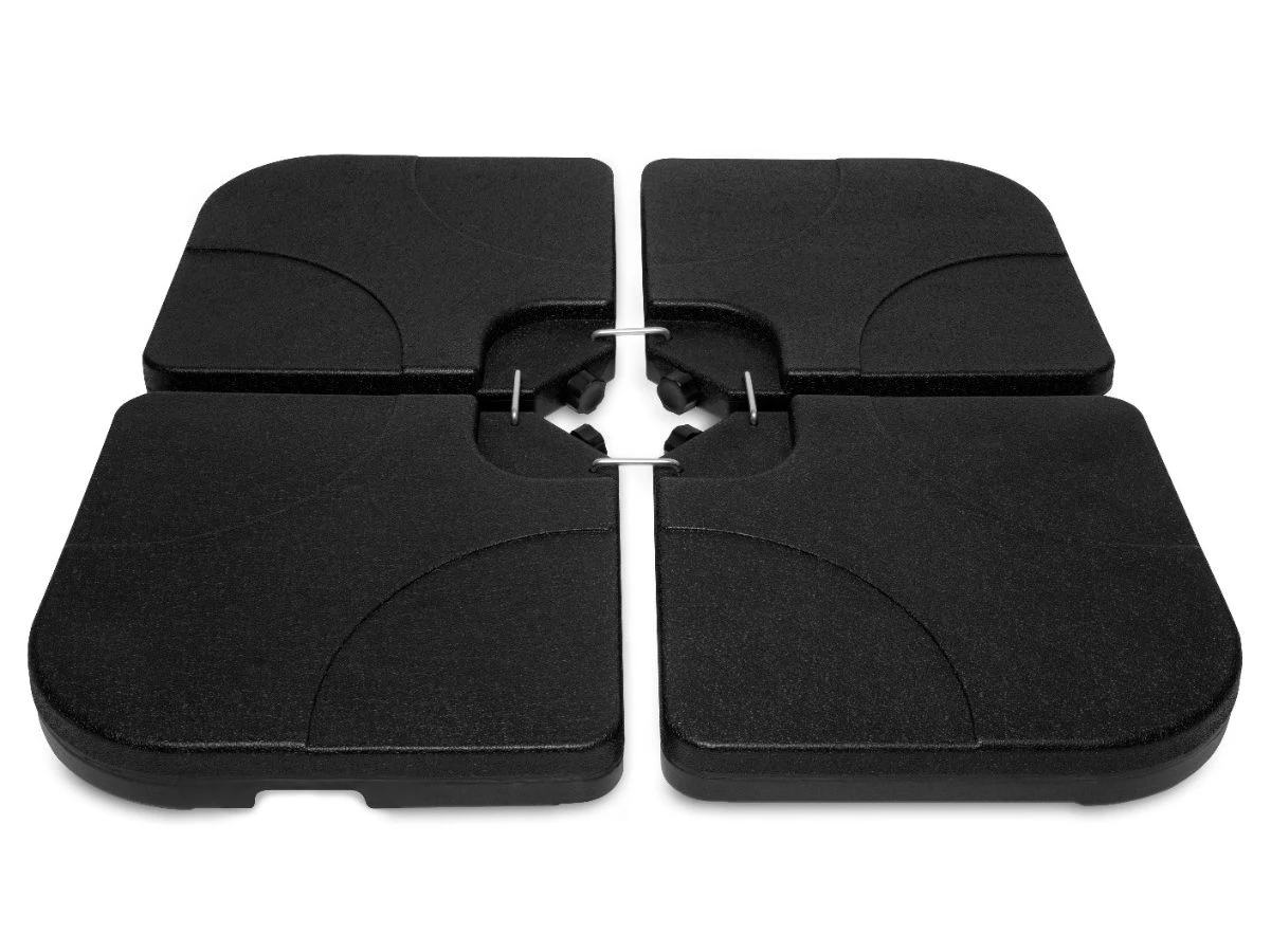 Met deze 4-delige set parasoltegels blijft jouw parasol stevig en perfect op zijn plek staan. De vulbare tegels hebben een inhoud van 15 liter per stuk. Ze kunnen gevuld worden met water, zand of cement, en zijn goed voor een totaalgewicht van ±100 kilo! De tegels zijn tevens gemakkelijk te legen (wanneer ze gevuld zijn met slechts water) en eenmaal leeg zijn ze licht van gewicht en gemakkelijk te verplaatsen/op te bergen.