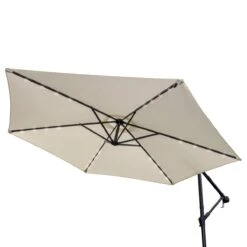 – Elke staaf in the parasol is uitgerust met 4 prachtige, witte LED-lampjes. Deze lampjes werken op zonne-energie waardoor u als de zon ondergaat uw tuin op een milieu- en financieel vriendelijke manier verlicht houden.