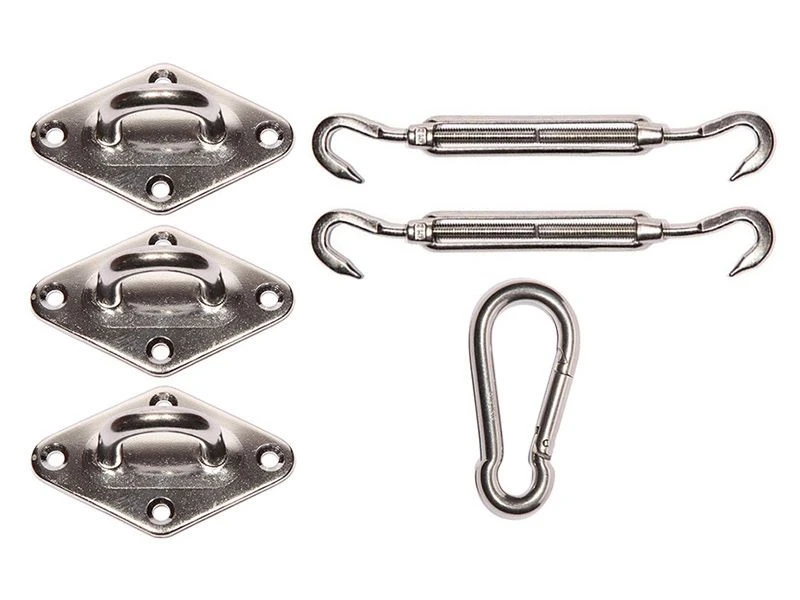 Heb je een mooi schaduwdoek uitgezocht voor de tuin, maar moet deze nog bevestigd worden? Met deze bevestigingsset is dat heel eenvoudig. Deze set bestaat uit 1 karabijnhaak, 2 spanmoeren en 3 slotogen.