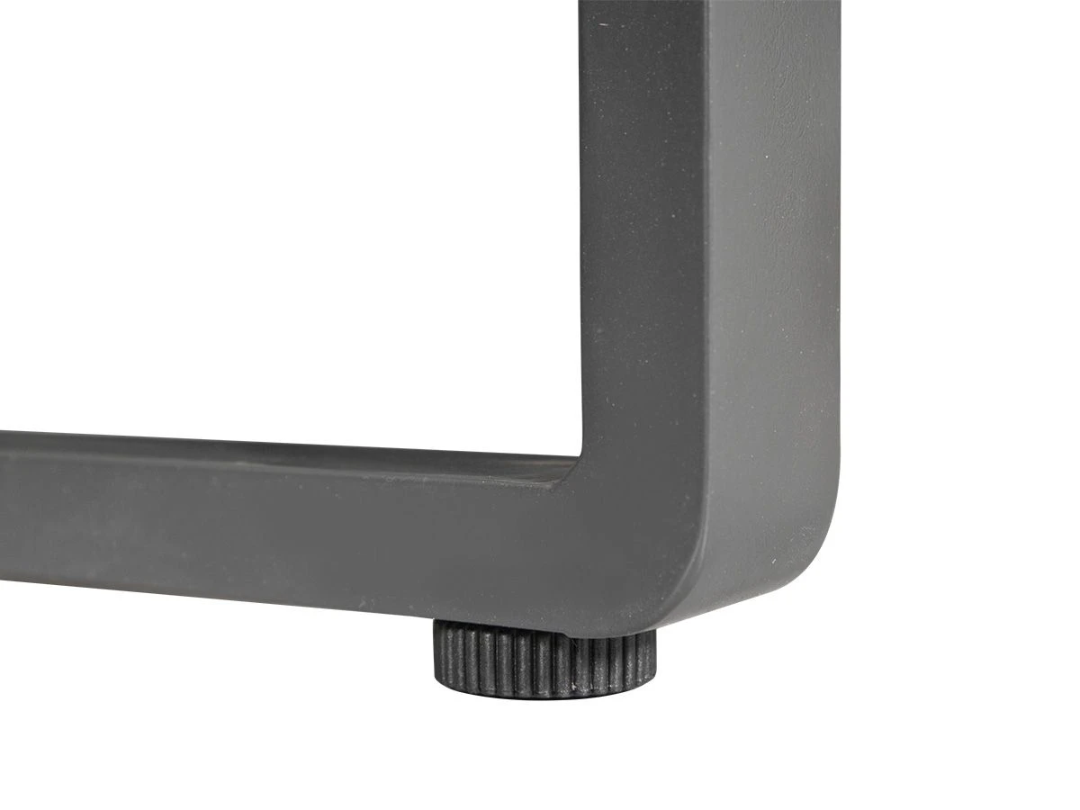 De hoekbank is aan beide kanten voorzien van een een tafeltje zodat je jouw drankje makkelijk kunt wegzetten. Het frame is bestand tegen uiteenlopende weersinvloeden en eenvoudig schoon te maken.